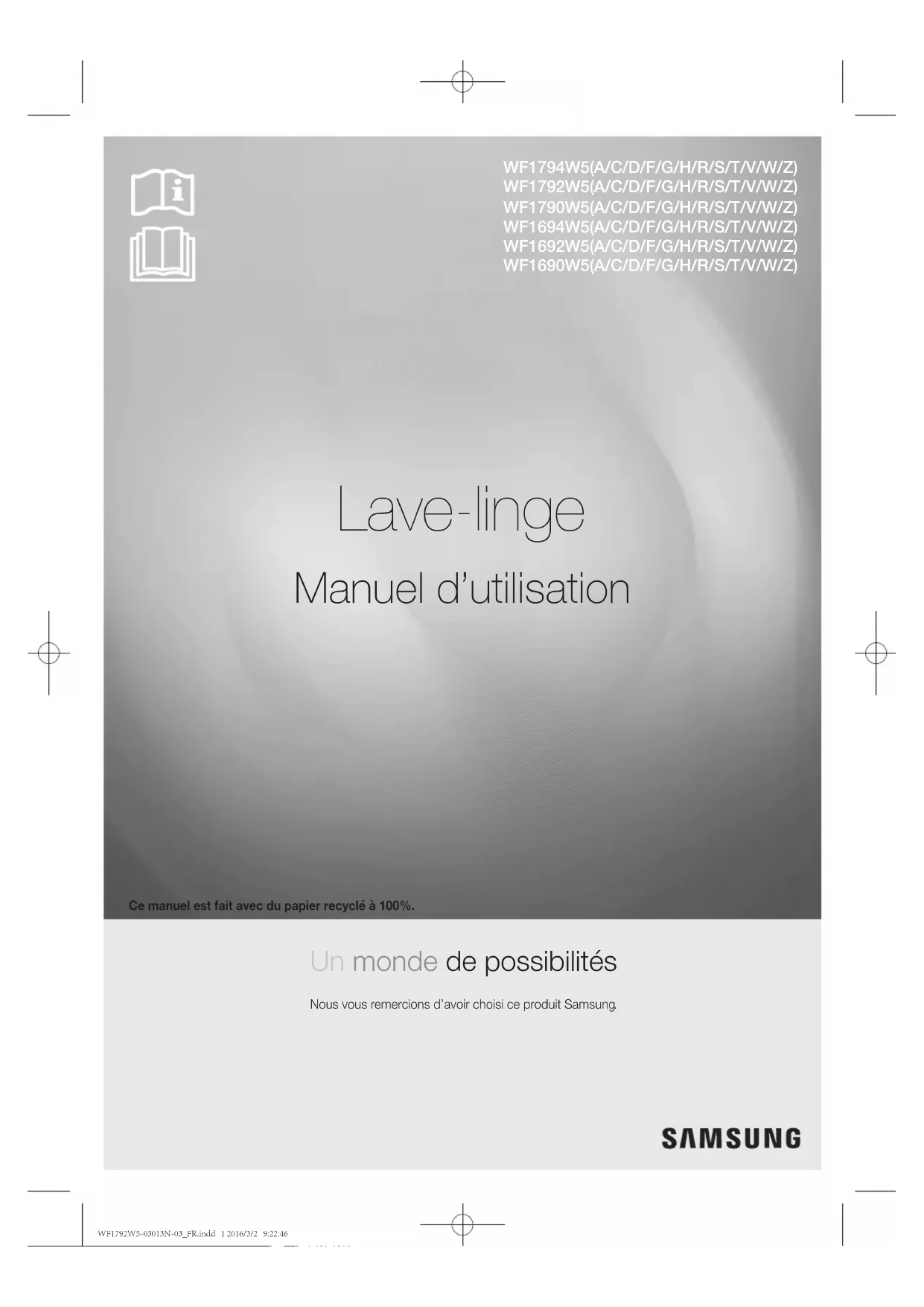 Retrouvez gratuitement la notice de l'appareil WF1792W5S SAMSUNG au format PDF.