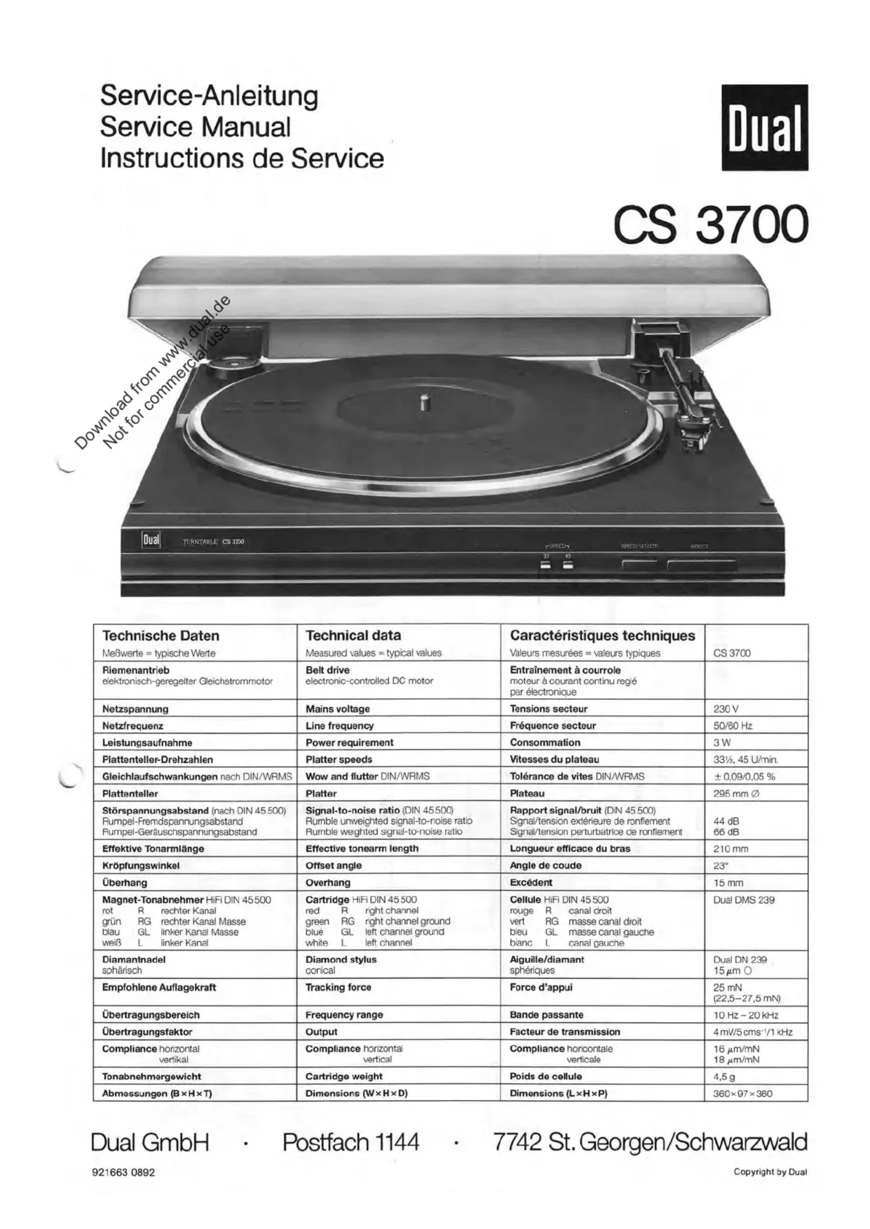 CS 3700 - Platine disque DUAL - Notice d'utilisation et mode d'emploi gratuit
