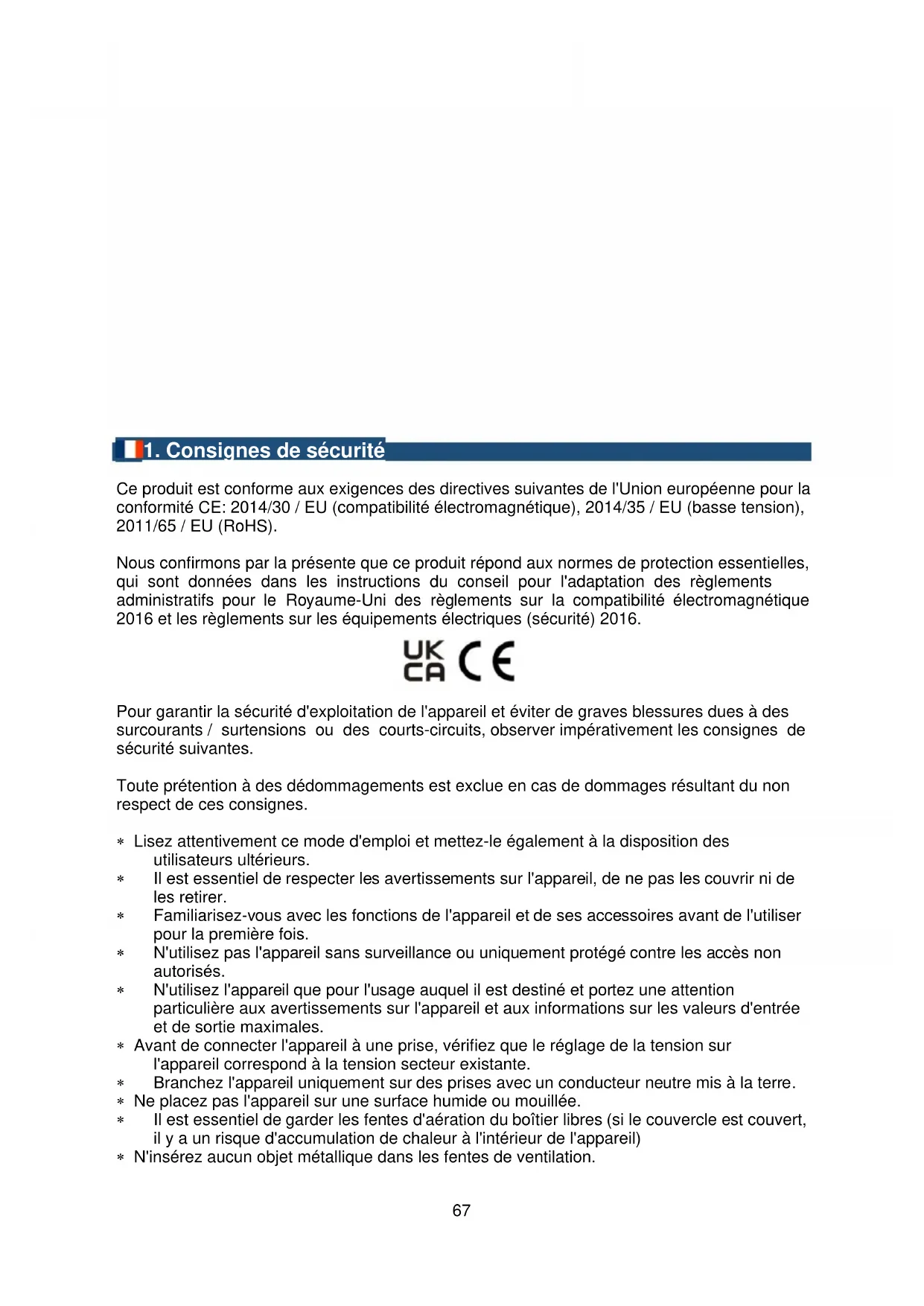 1. Pour éviter des chocs électriques (orage, courants de fuite ou tensions élevées), il est