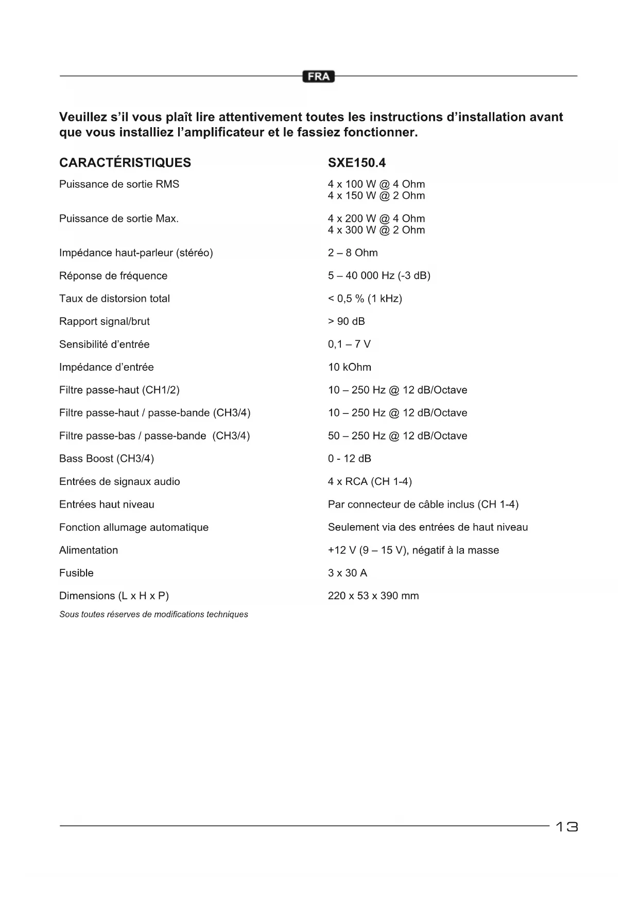 MODE D'EMPLOI Signum SXE150.4 ESX