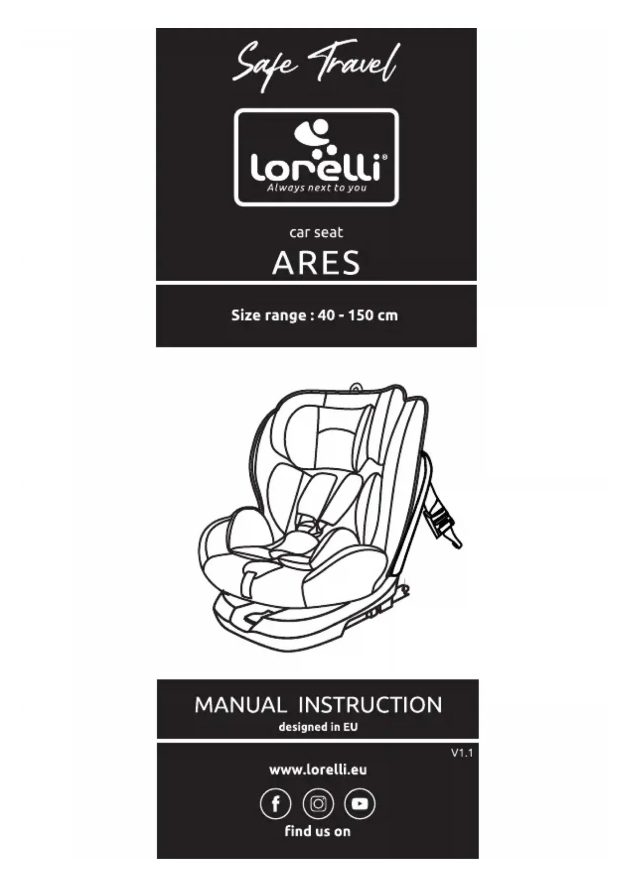 Le manuel d'utilisation du siège de voiture Lorelli Ares est généralement inclus dans l'emballage du produit. Vous pouvez également le télécharger sur le site officiel de Lorelli ou contacter leur service client pour obtenir une copie.