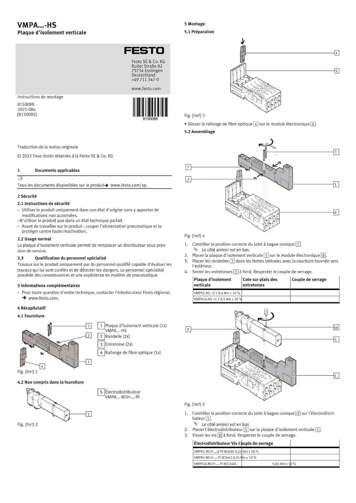 Retrouvez gratuitement la notice de l'appareil VMPA1HS Festo au format PDF.