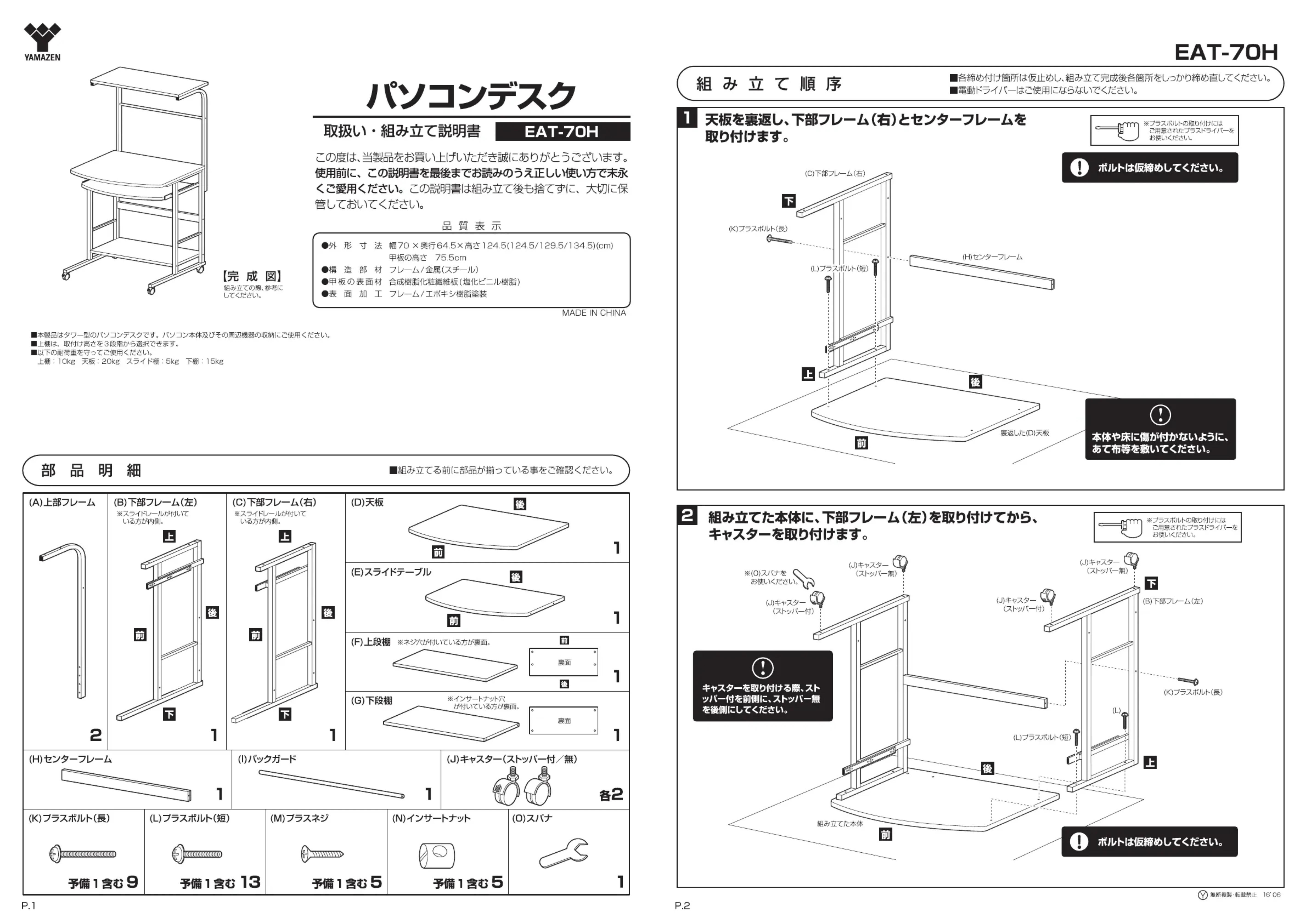 EAT70H - Bureau Yamazen - Notice d'utilisation et mode d'emploi gratuit