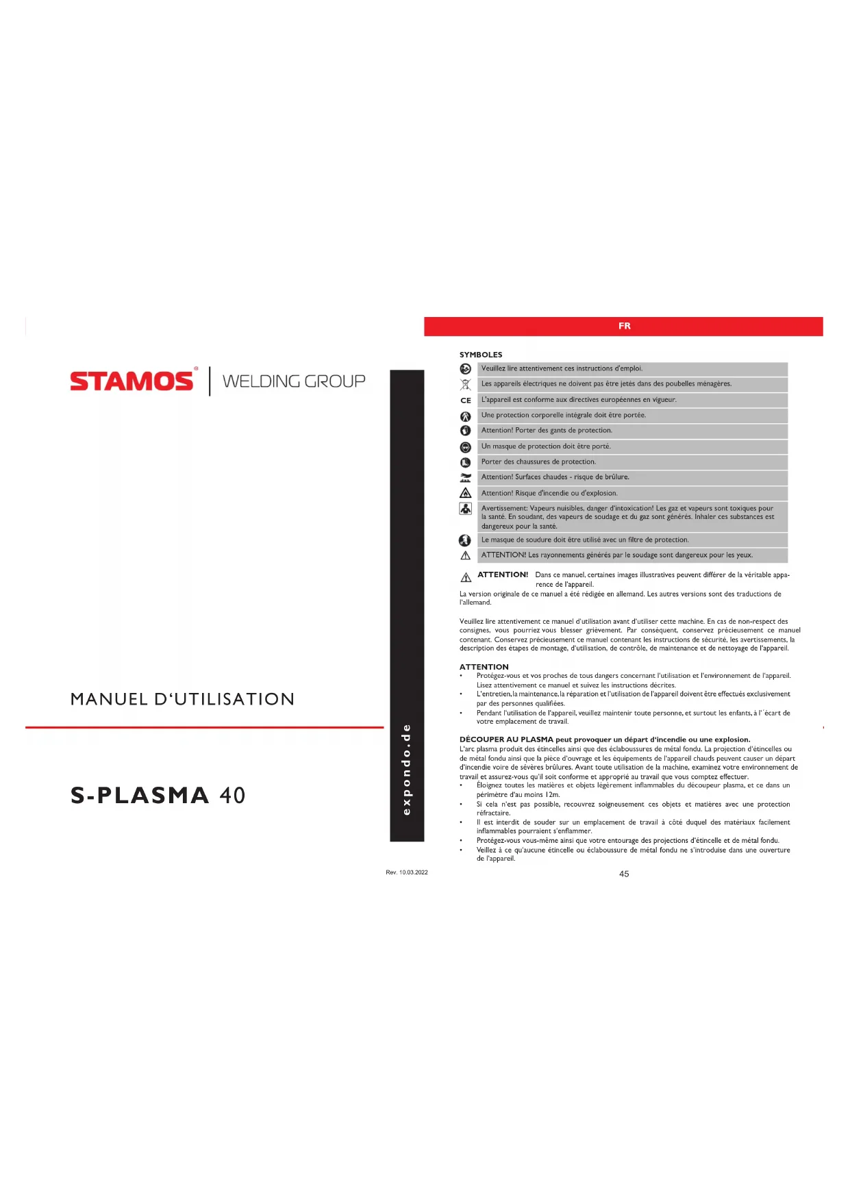 SPLASMA 40 - Poste à souder plasma Stamos - Notice d'utilisation et mode d'emploi gratuit