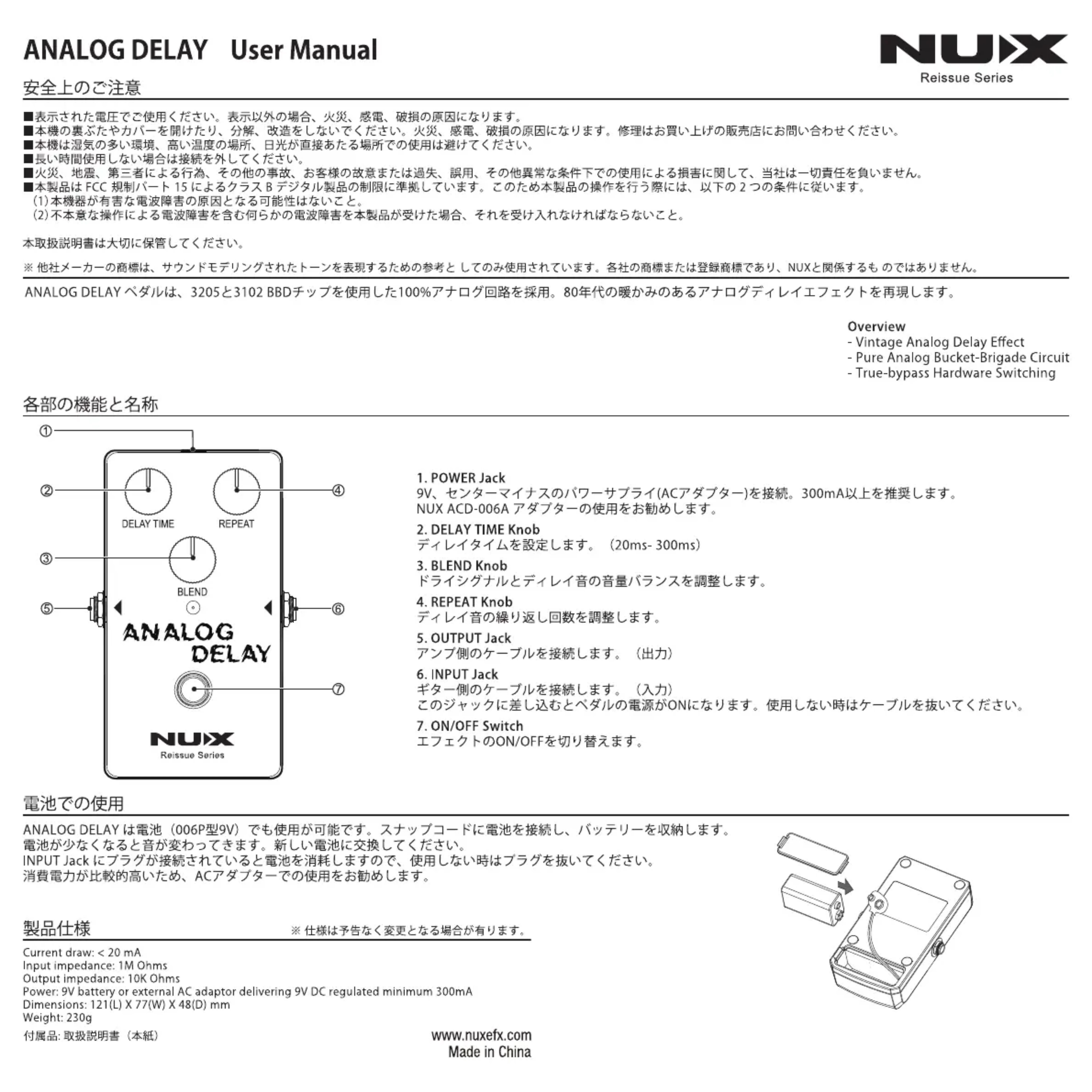 Analog Delay - Machine à effet NUX - Notice d'utilisation et mode d'emploi gratuit