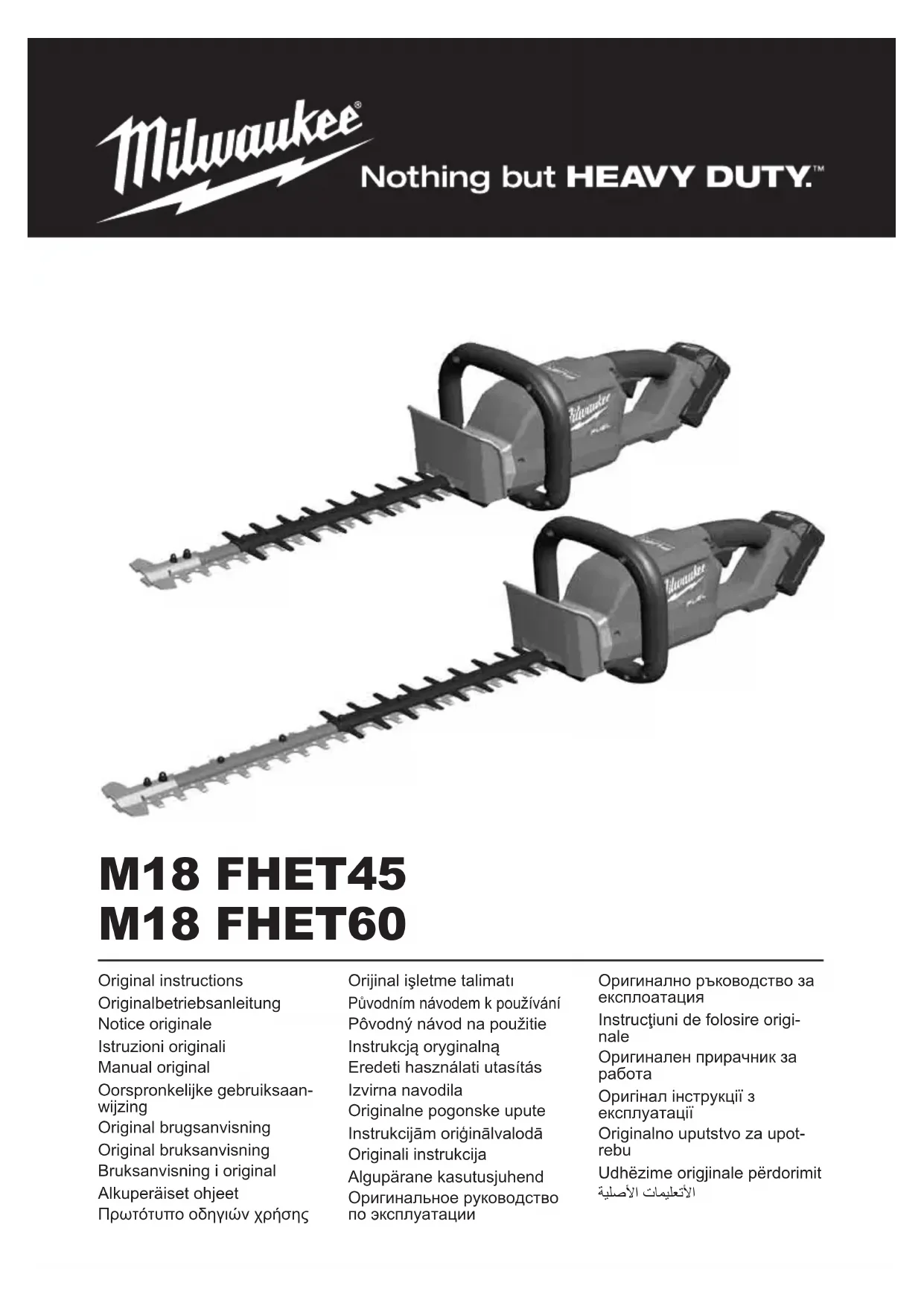 M18 Fuel FHET60 - Taille-haies MILWAUKEE - Notice d'utilisation et mode d'emploi gratuit