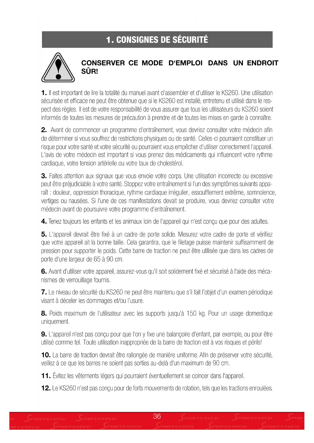 MODE D'EMPLOI KS260 Sportstech