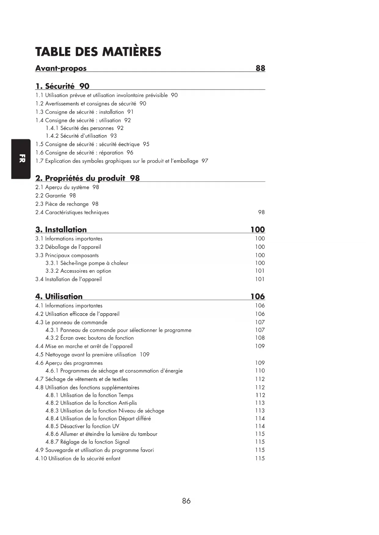3.3.1 Sécheuse pompe à chaleur 100 3.3.2 Accessoires en option 101