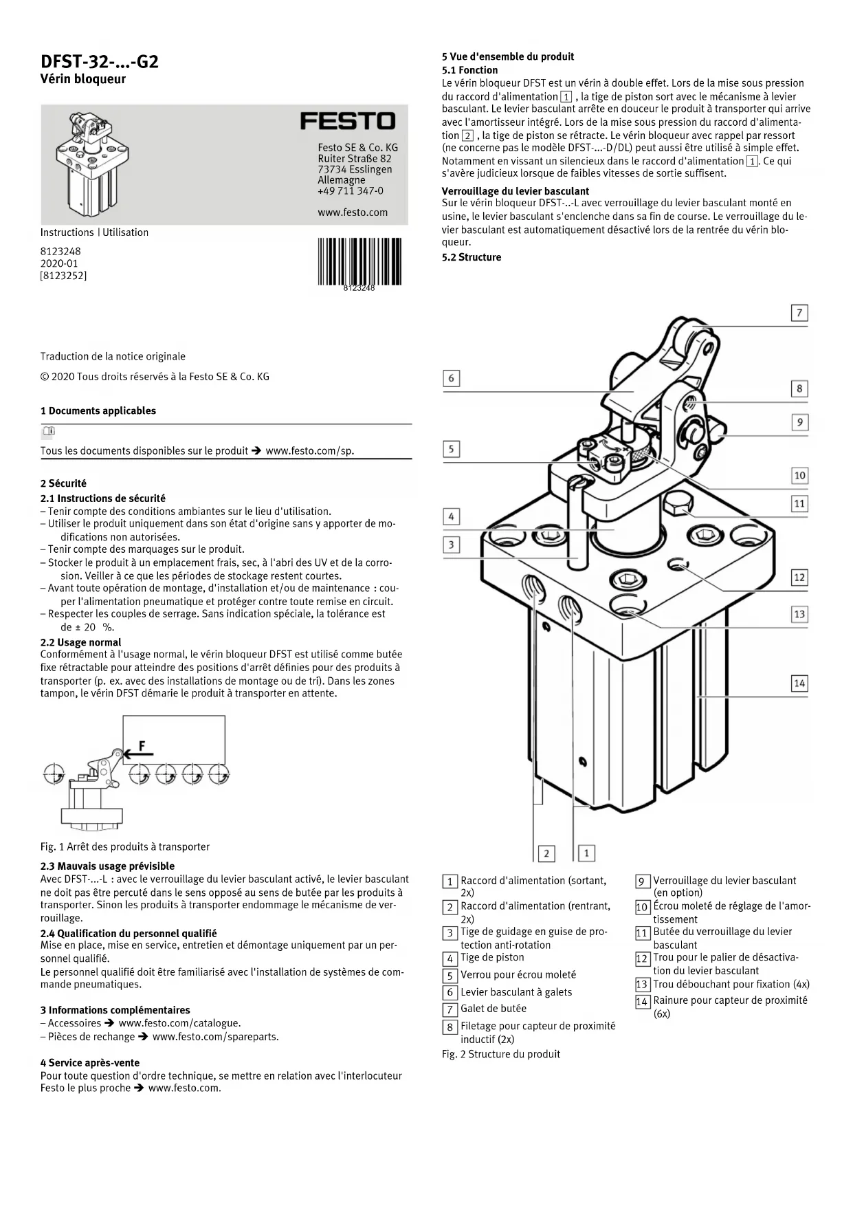 Traduction de la notice originale © 2020 Tous droits réservés à la Festo SE & Co. KG 1 Documents applicables Tous les documents disponibles sur le produit èwww.festo.com/sp. 2 Sécurité