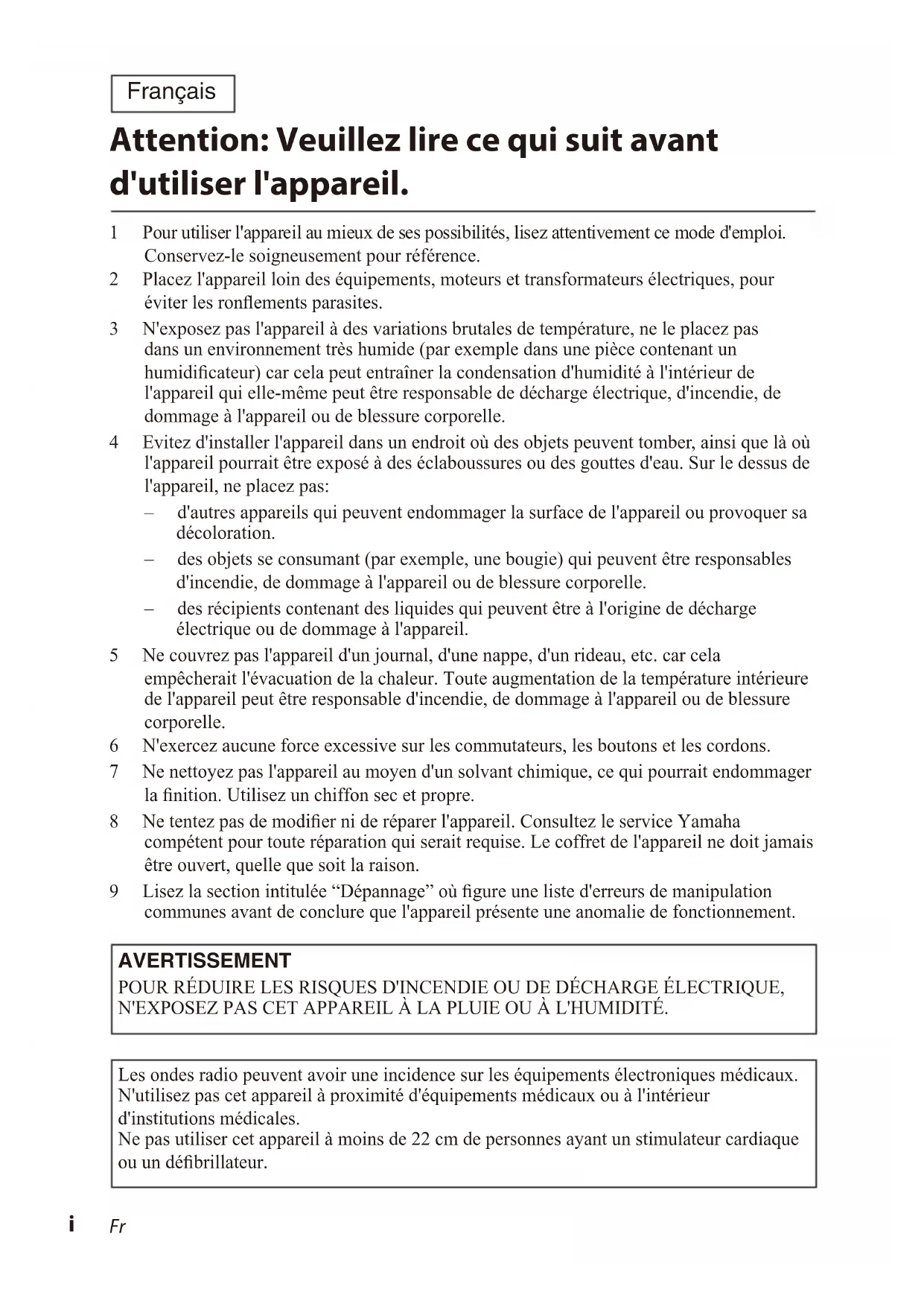 Attention: Veuillez lire ce qui suit avant d'utiliser l'appareil. i1