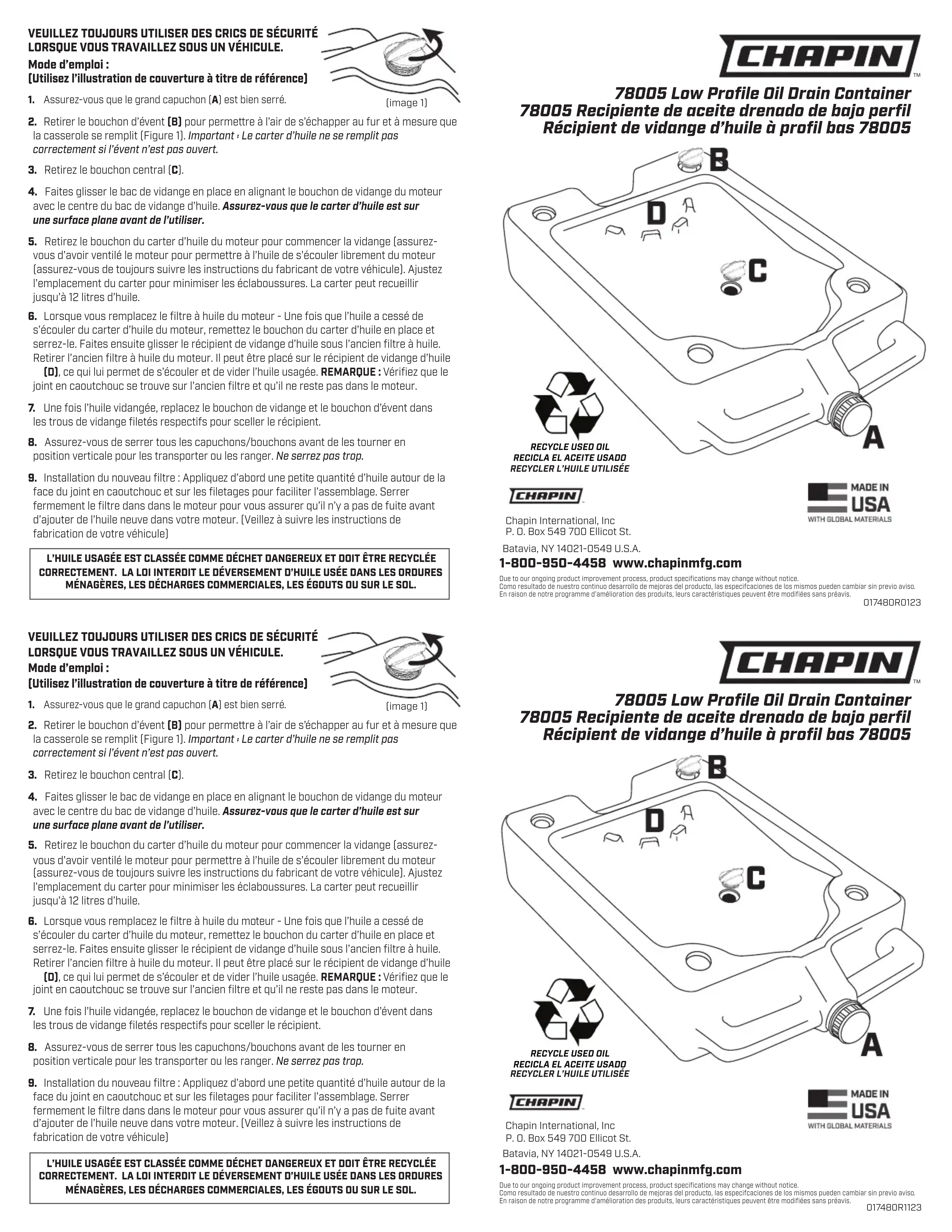 78005 - Récipient de vidange d'huile Chapin - Notice d'utilisation et mode d'emploi gratuit