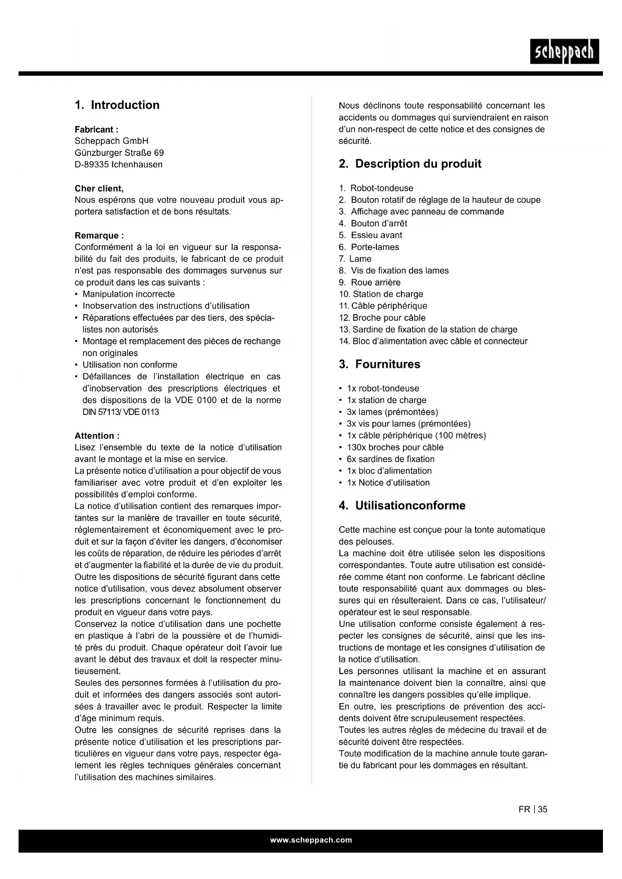 RRMA300 - Tondeuse robotique SCHEPPACH - Notice d'utilisation et mode d'emploi gratuit