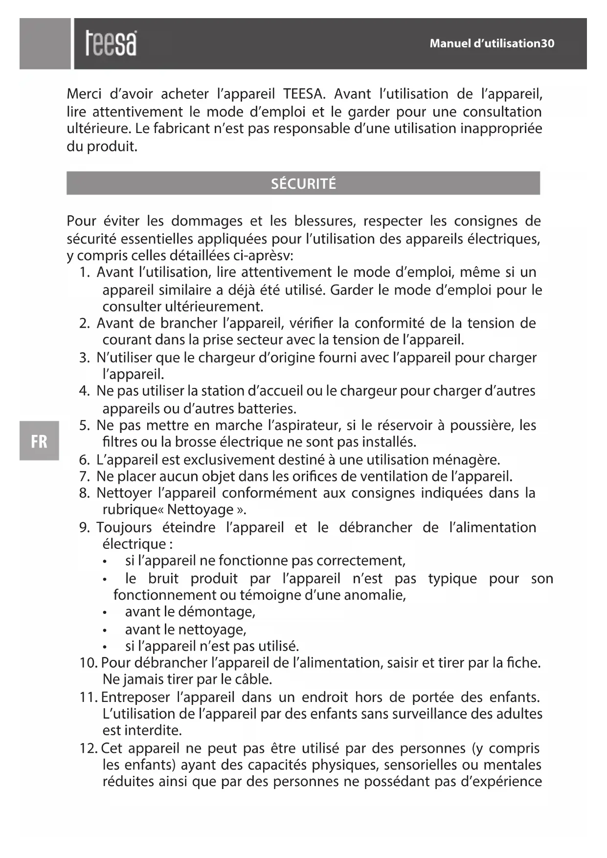 12. Cet appareil ne peut pas être utilisé par des personnes (y compris