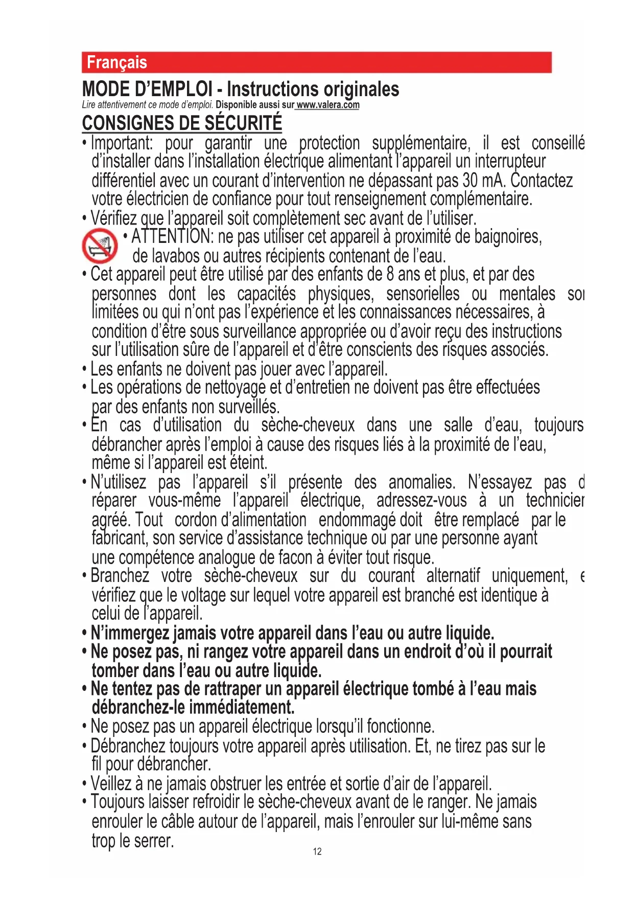 Vanitycare AI - Sèche-cheveux VALERA - Notice d'utilisation et mode d'emploi gratuit