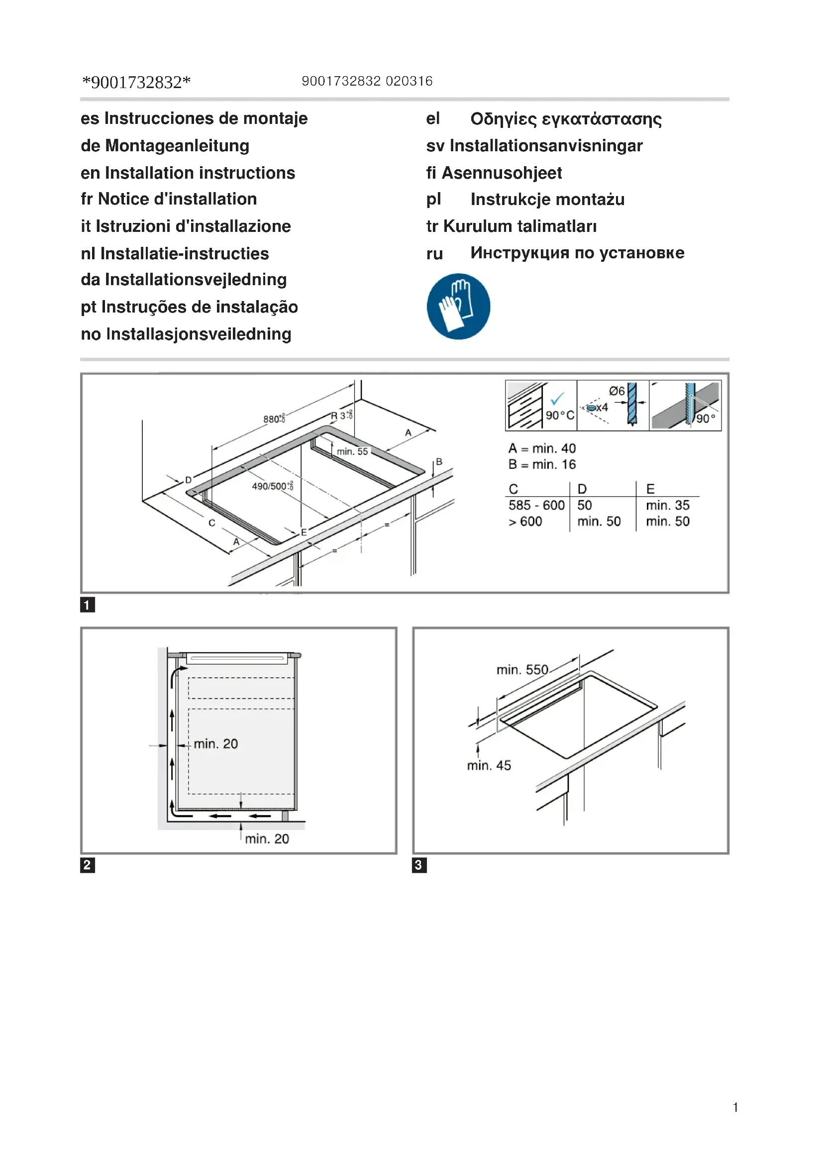 de montage. ‒ Veiller à ce que l'angle du chant de la découpe par rapport au plan de travail soit de 90°.