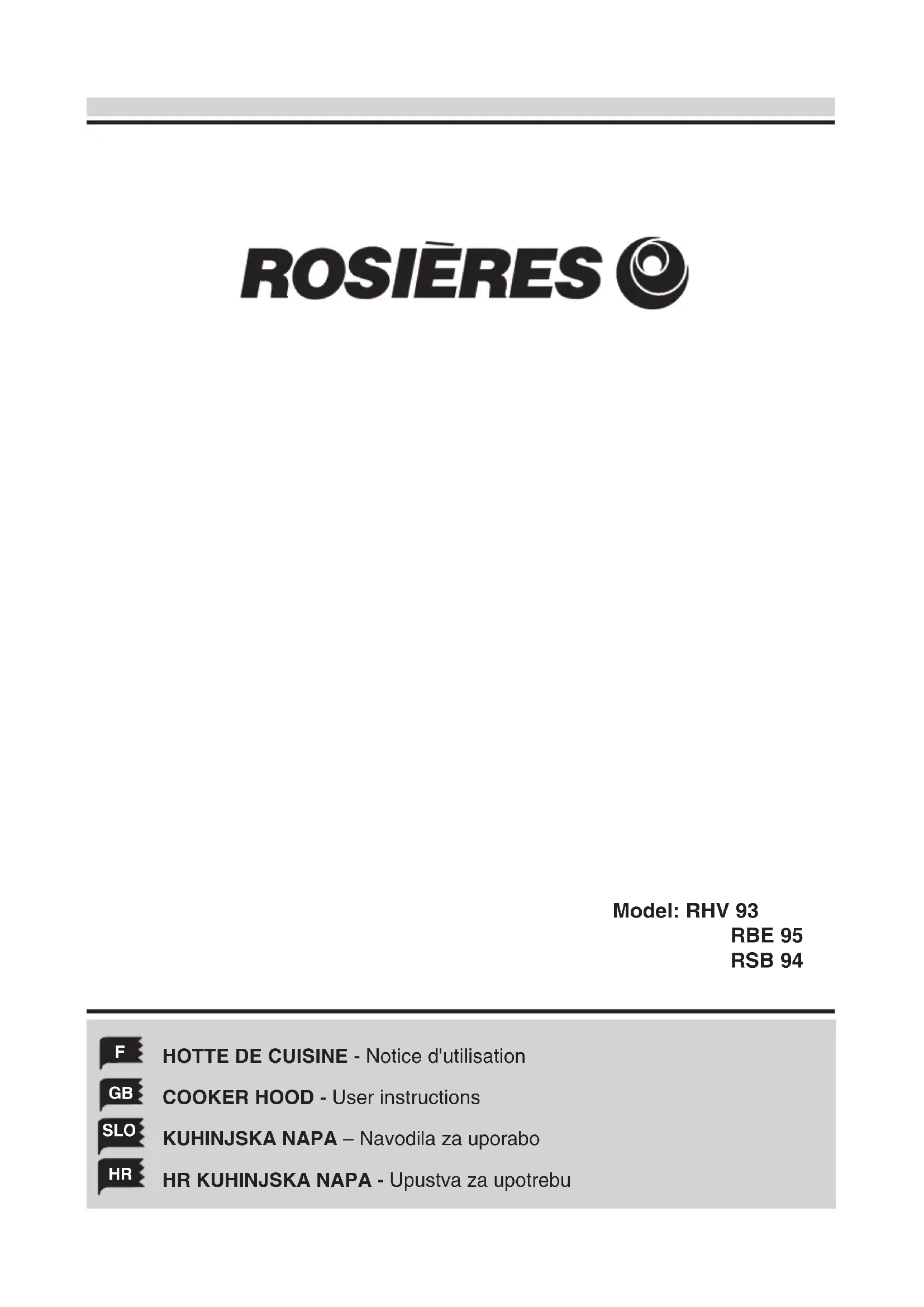 RBE 951 IN - Hotte ROSIERES - Notice d'utilisation et mode d'emploi gratuit