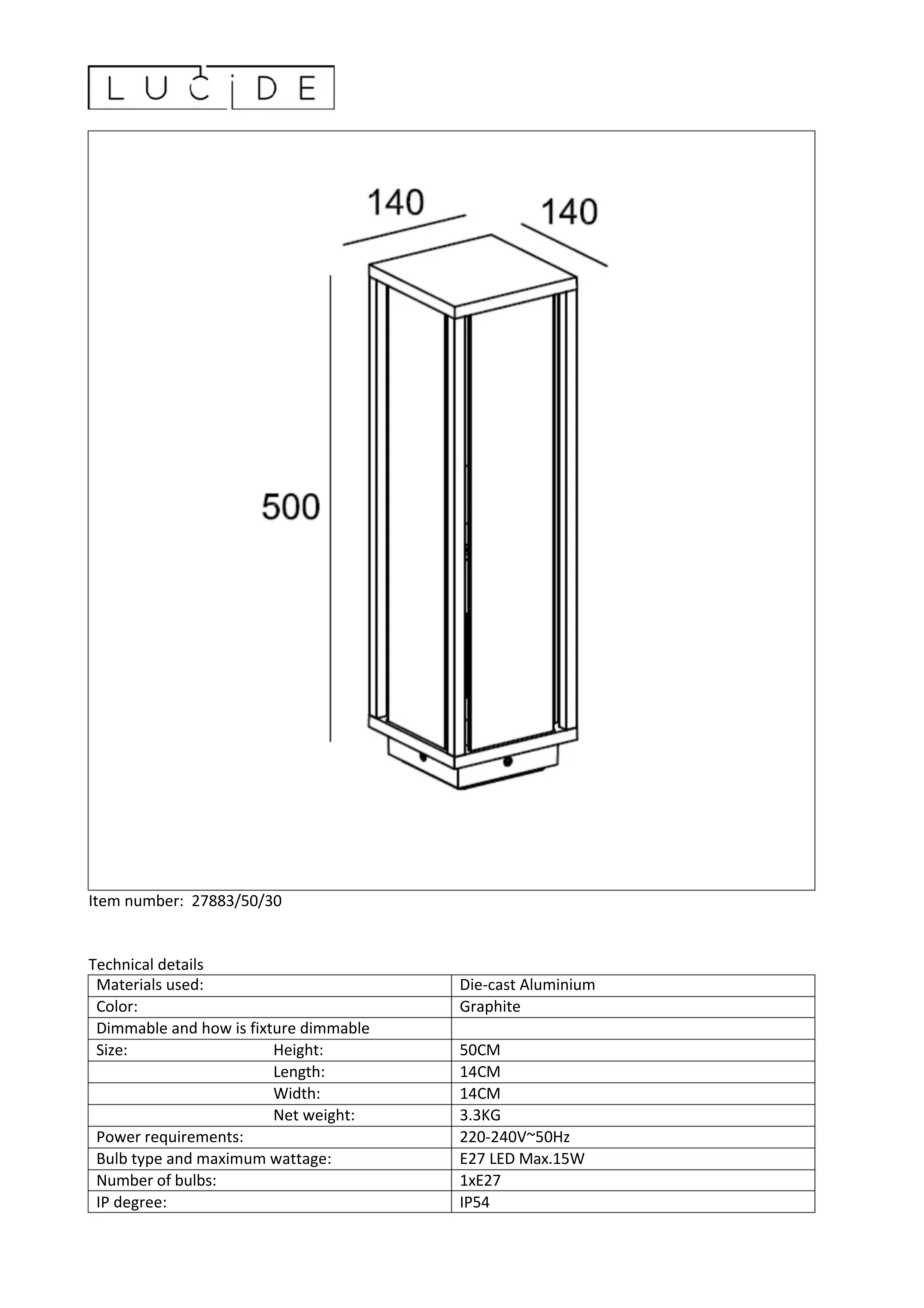 Claire 278835030 - Lampe extérieure Lucide - Notice d'utilisation et mode d'emploi gratuit