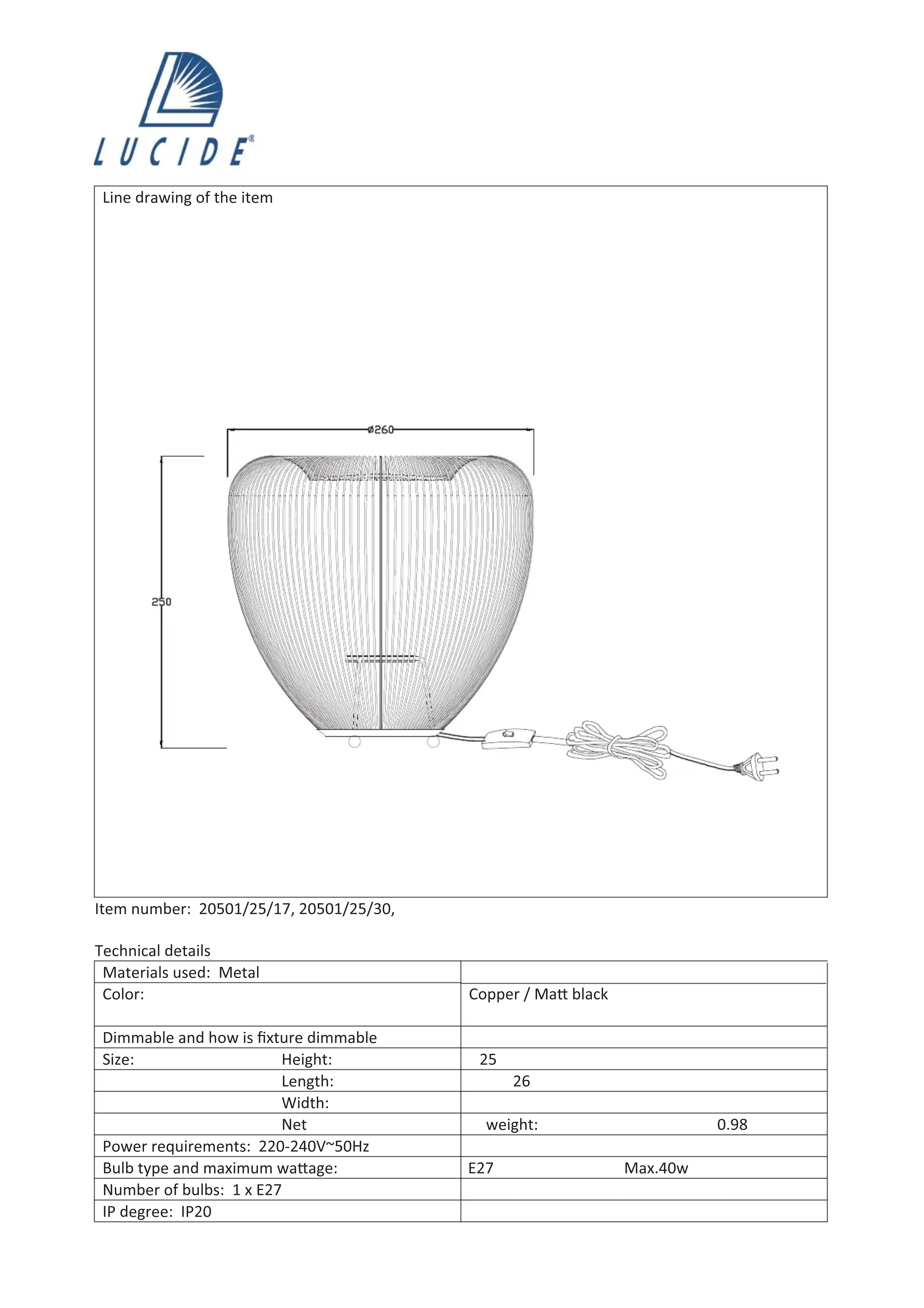 Wirio 205012517 - Lampe Lucide - Notice d'utilisation et mode d'emploi gratuit
