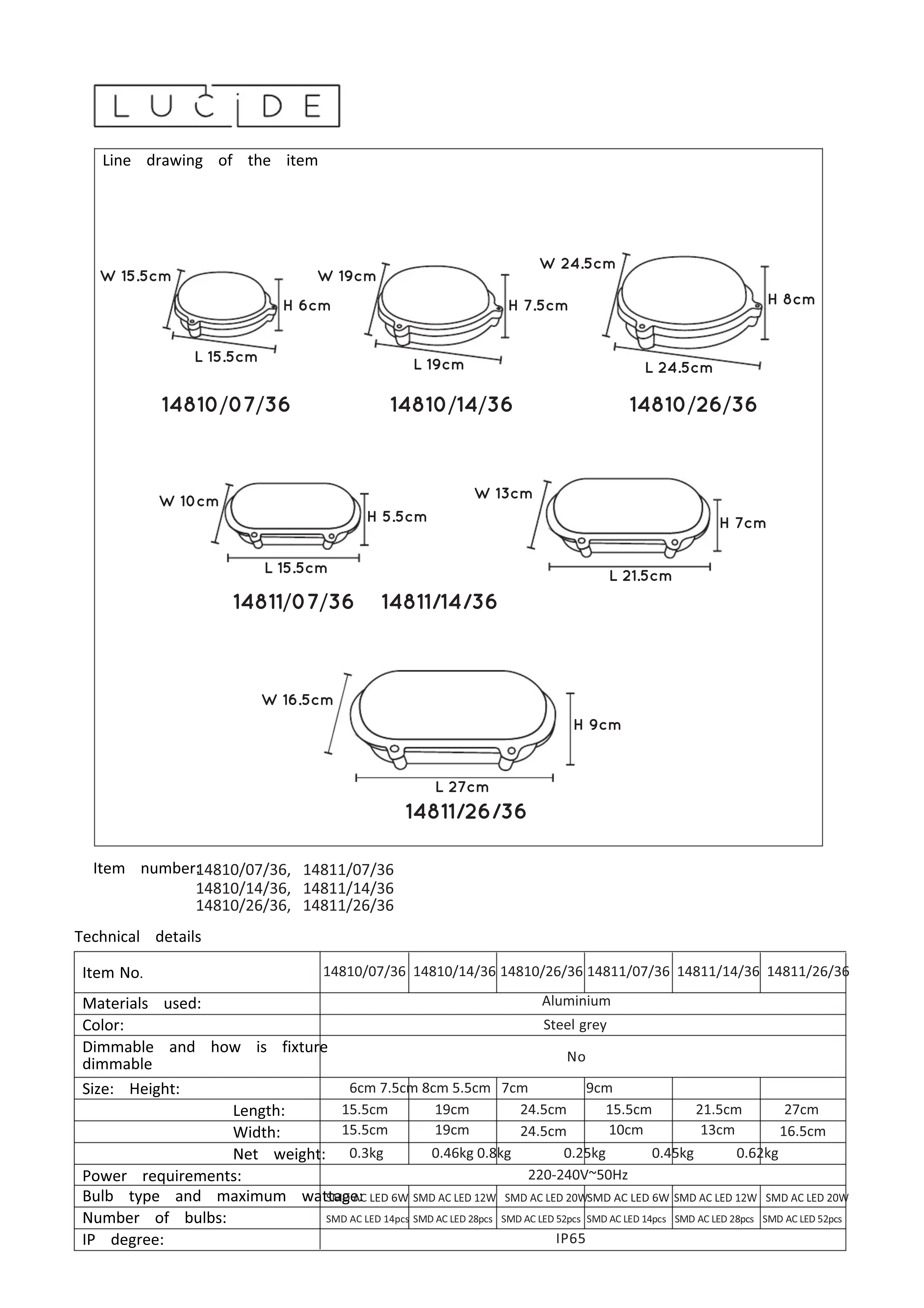 | Caractéristiques techniques | Hublot Lucide 148110736, design moderne, finition en métal, source lumineuse non incluse. |