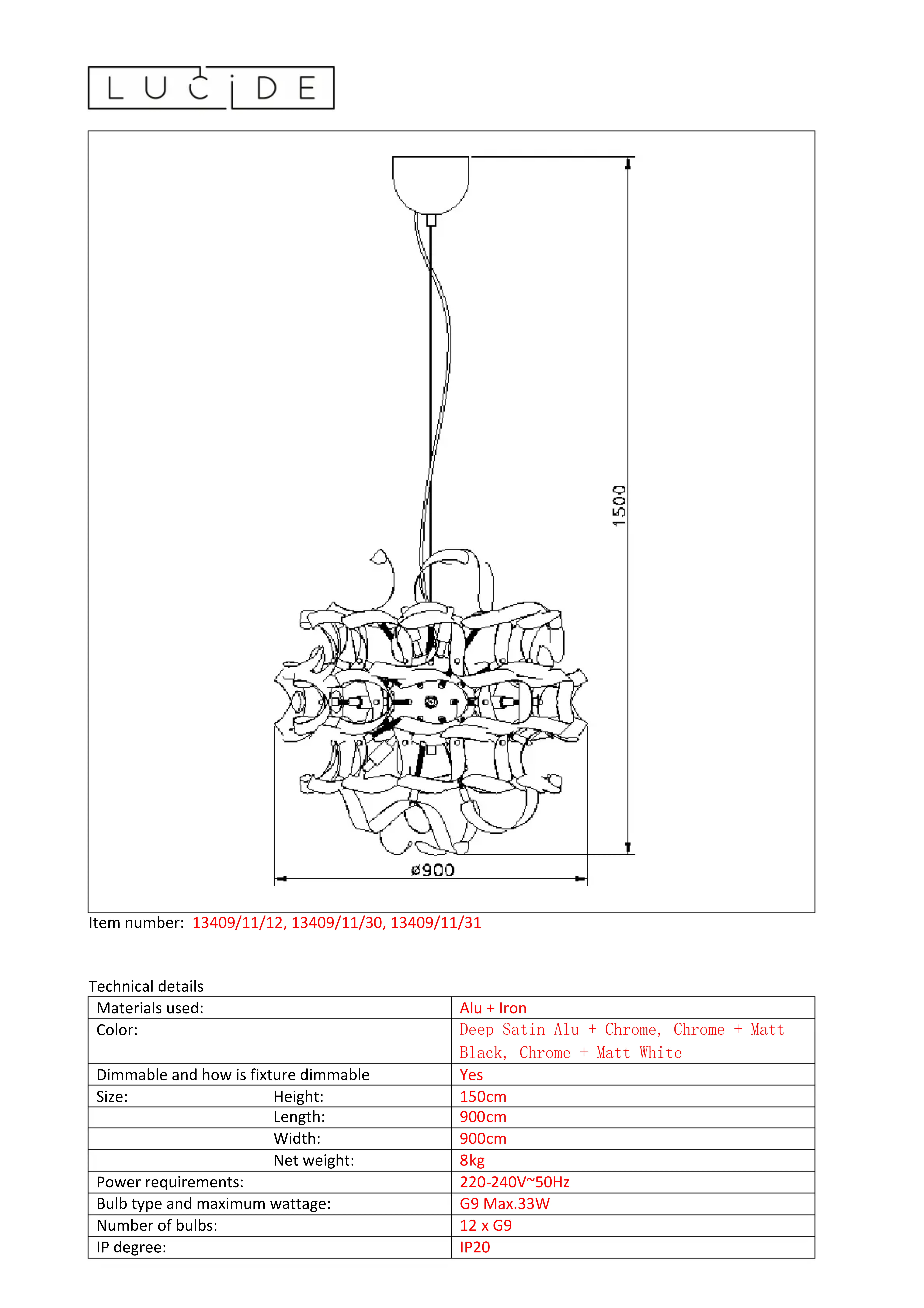 | Informations supplémentaires | Compatible avec variateur de lumière |