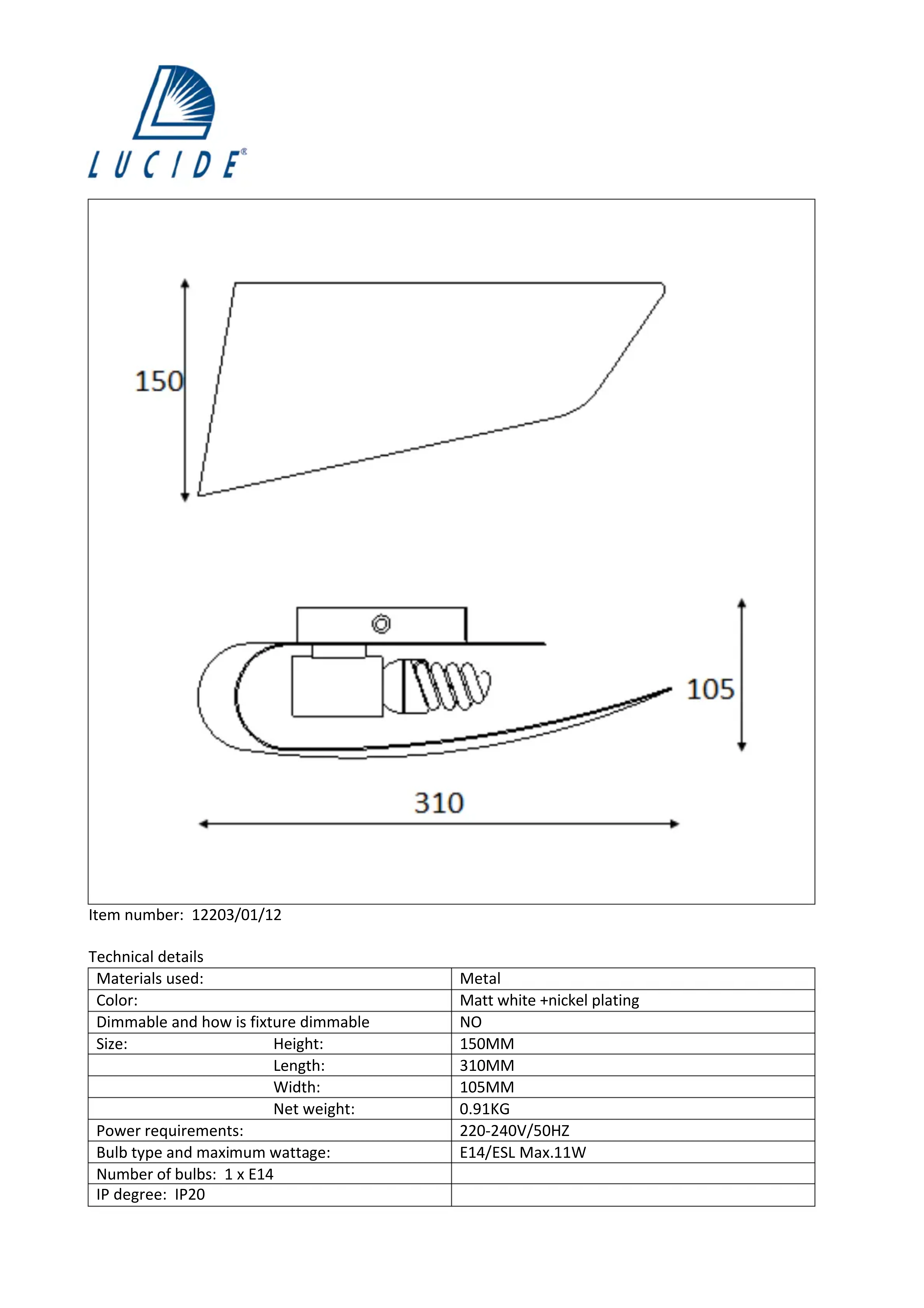 Ola 122030112 - Éclairage Lucide - Notice d'utilisation et mode d'emploi gratuit