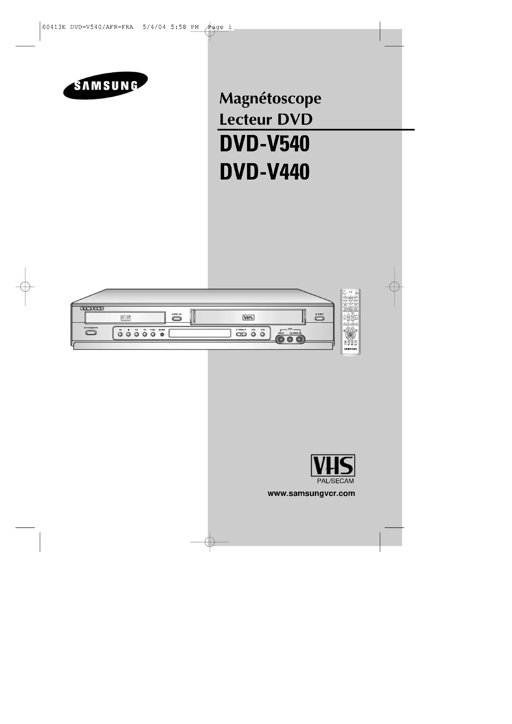 Retrouvez gratuitement la notice de l'appareil DVDV440 SAMSUNG au format PDF.