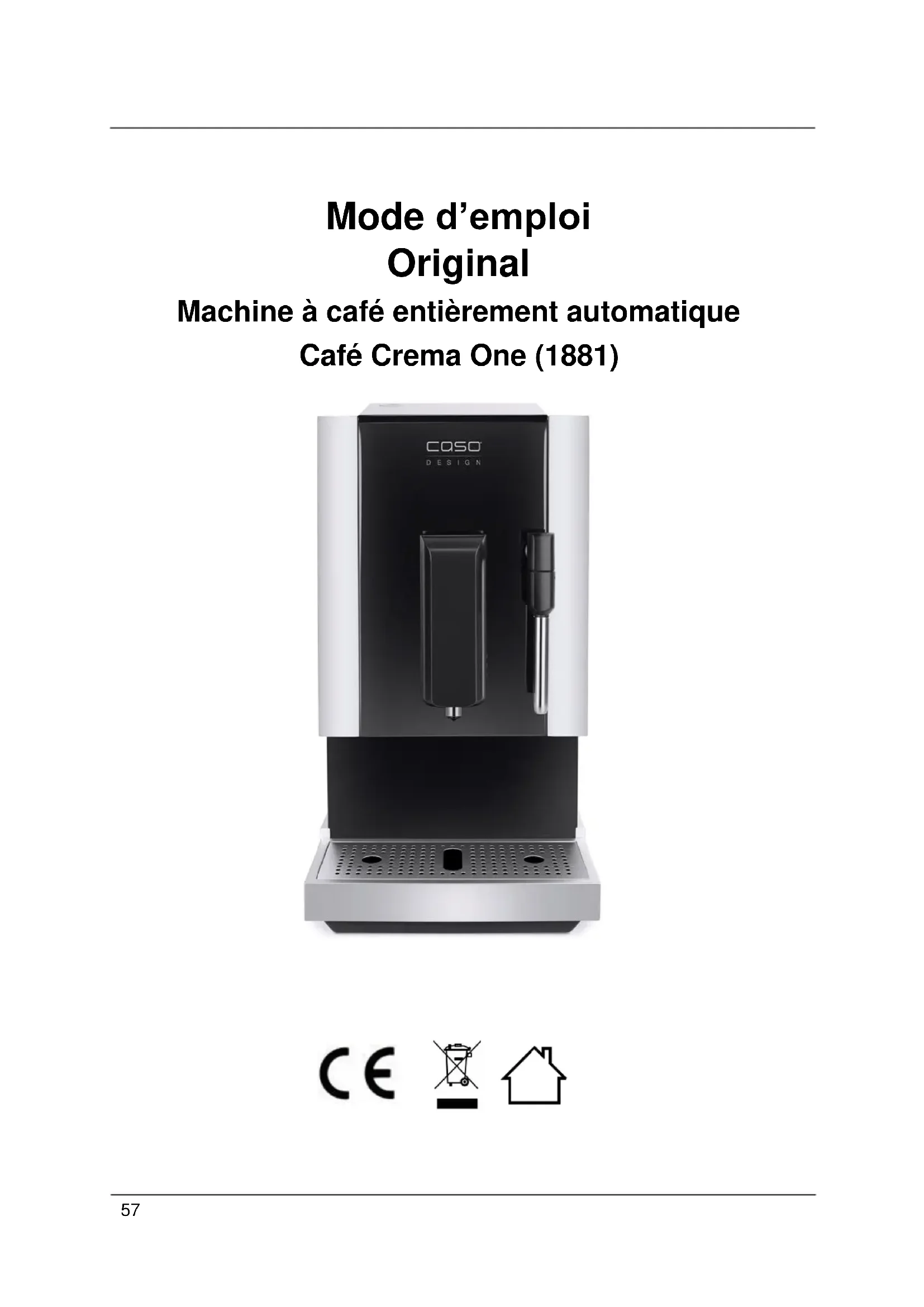 Café Crema One 1881 - Machine à café CASO - Notice d'utilisation et mode d'emploi gratuit