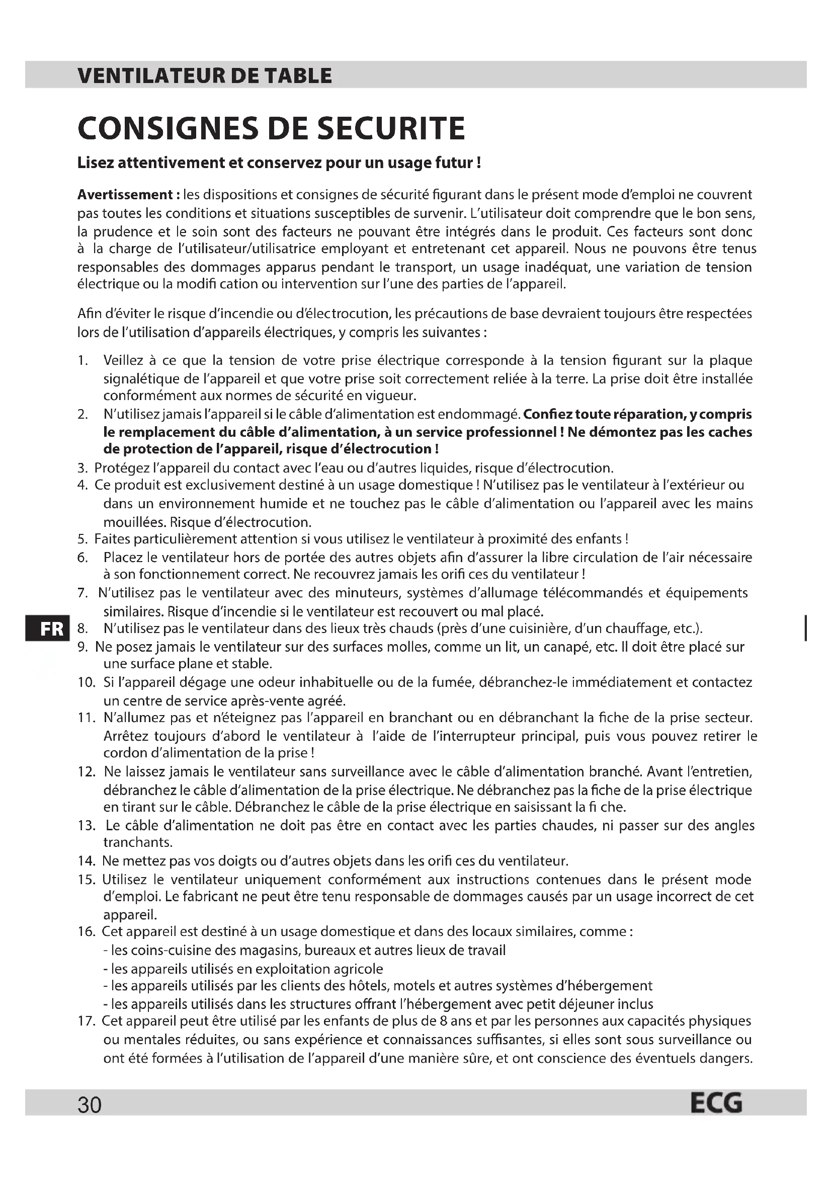 FT 33 - Ventilateur ECG - Notice d'utilisation et mode d'emploi gratuit