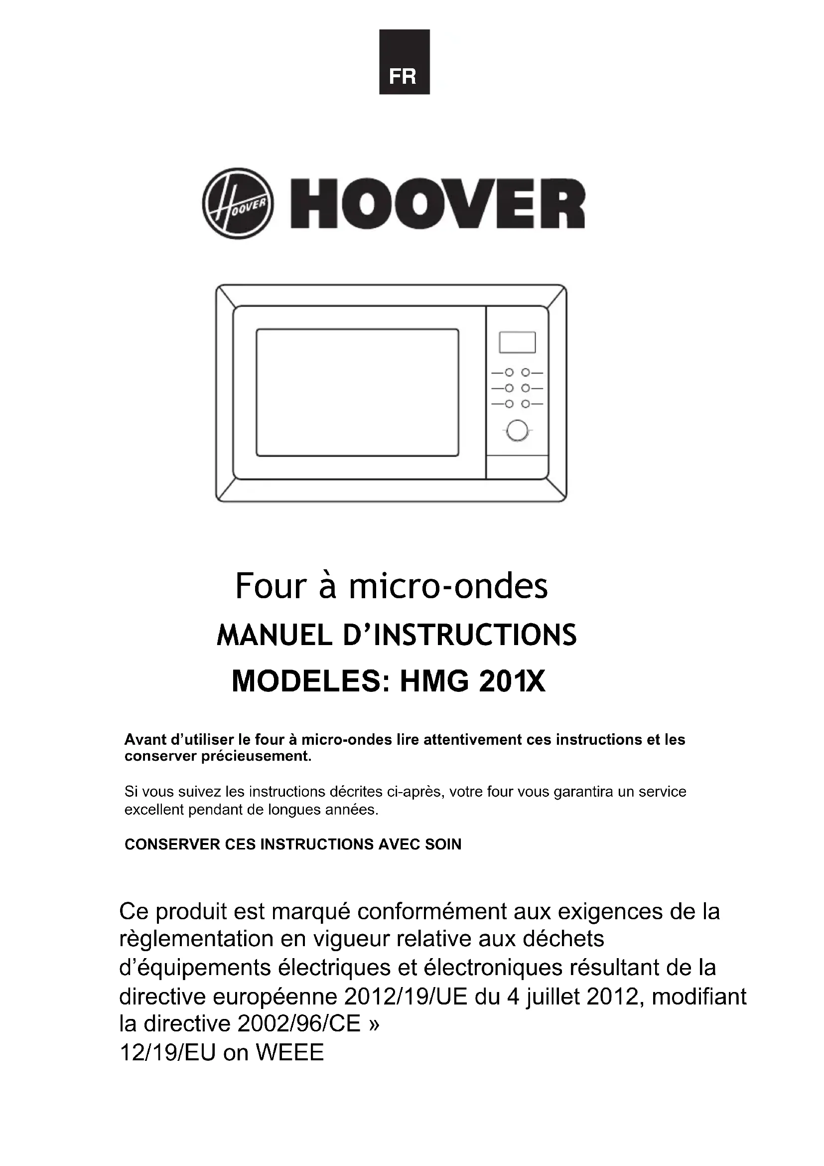 HMG201X - Four à micro-ondes HOOVER - Notice d'utilisation et mode d'emploi gratuit