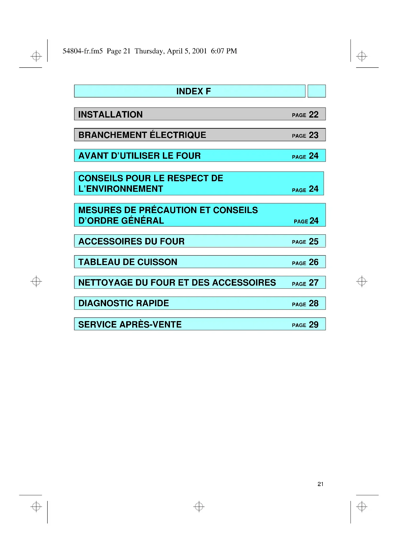 54804-fr.fm5 Page 21 Thursday, April 5, 2001 6:07 PM22 Informations techniques destinées à l’installateur