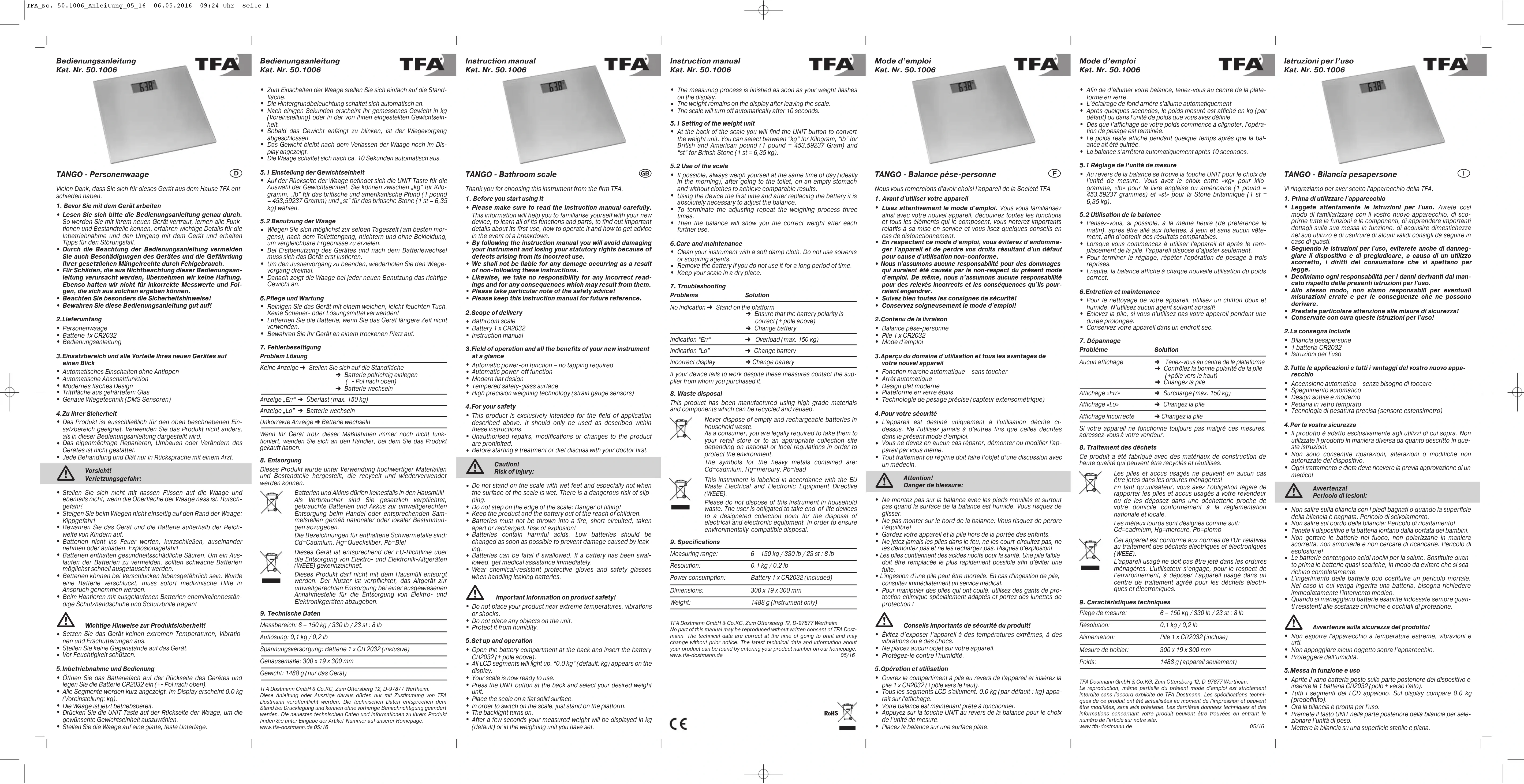 Tango 50.1006.54 - Balance TFA - Notice d'utilisation et mode d'emploi gratuit