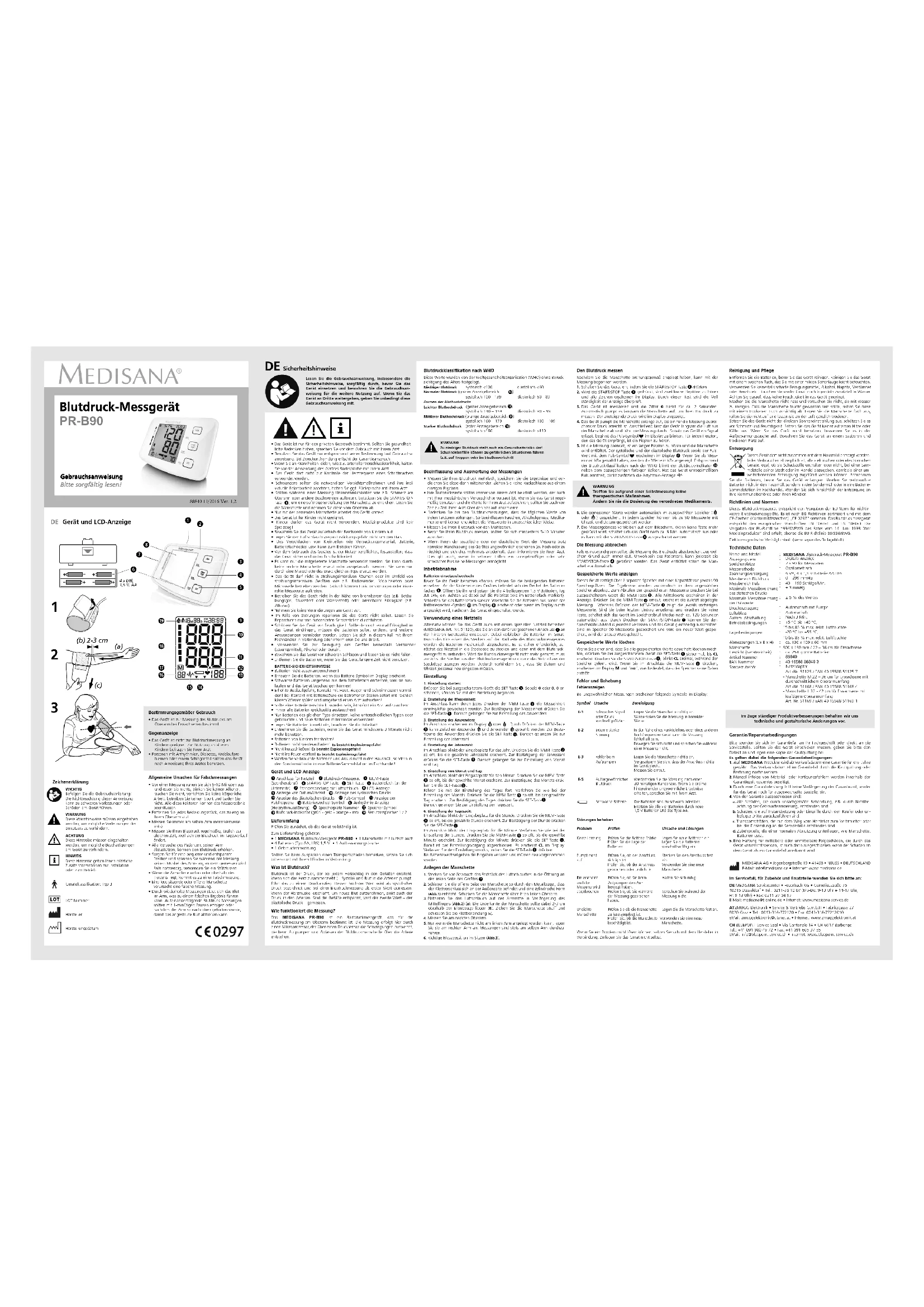 PRB90 - Tensiomètre MEDISANA - Notice d'utilisation et mode d'emploi gratuit
