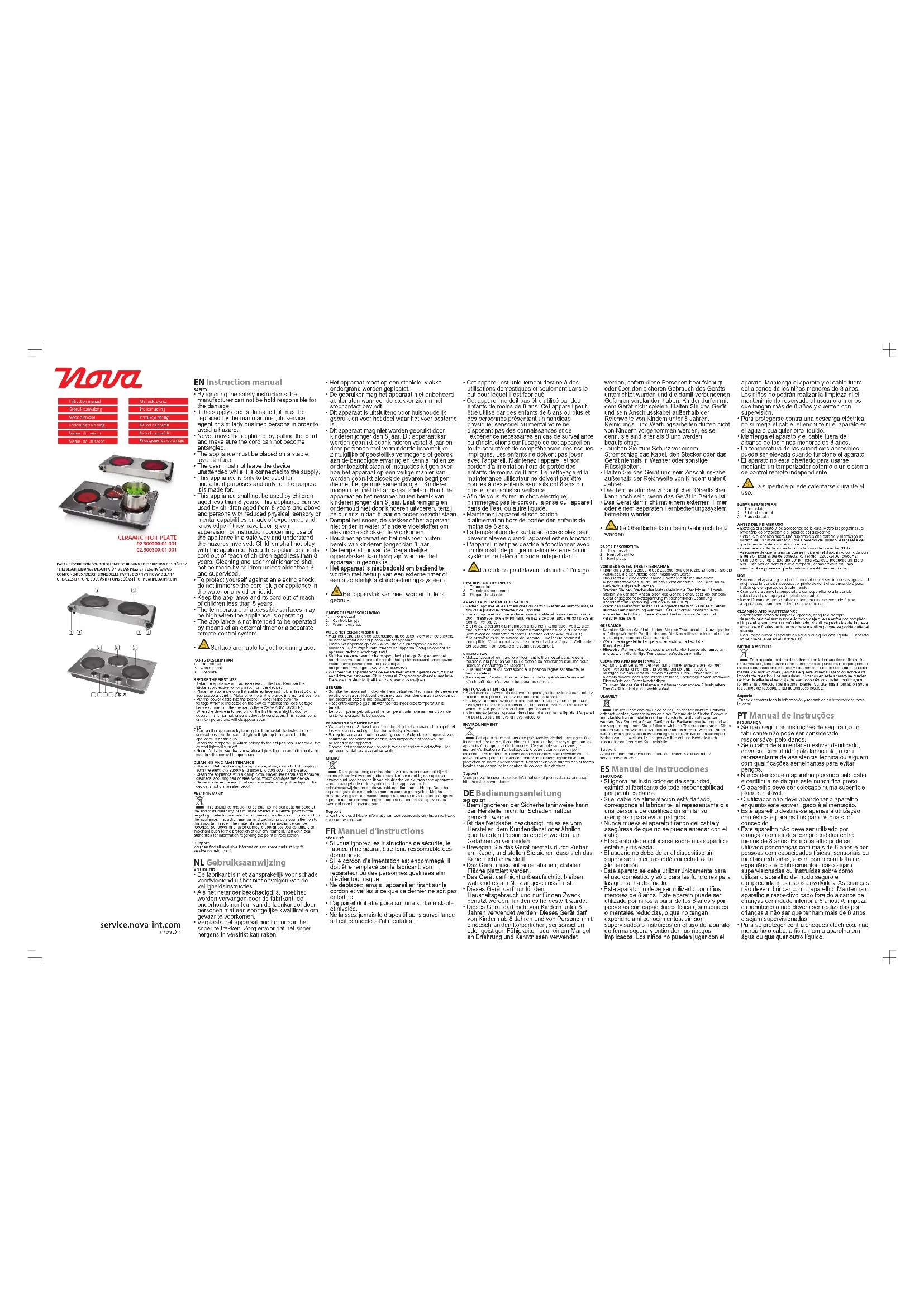 - N'immergez jamais l'appareil dans l'eau ni aucun autre liquide. L'appareil ne peut pas être nettoyé en lave-vaisselle.ENVIRONNEMENTCet appareil ne doit pas être jeté avec les déchets ménagers à lafin de sa durée de vie, il doit être remis à un centre de recyclage pour lesappareils électriques et électroniques. Ce symbole sur l'appareil, lemanuel d'utilisation et l'emballage attire votre attention sur un pointimportant. Les matériaux utilisés dans cet appareil sont recyclables. Enrecyclant vos appareils, vous contribuez de manière significative à laprotection de notre environnement. Renseignez-vous auprès des autoritéslocales pour connaître les centres de collecte des déchets.SupportVous pouvez trouver toutes les informations et pièces de rechange surhttp://service.nova-int.com ! DEBedienungsanleitung SICHERHEIT
