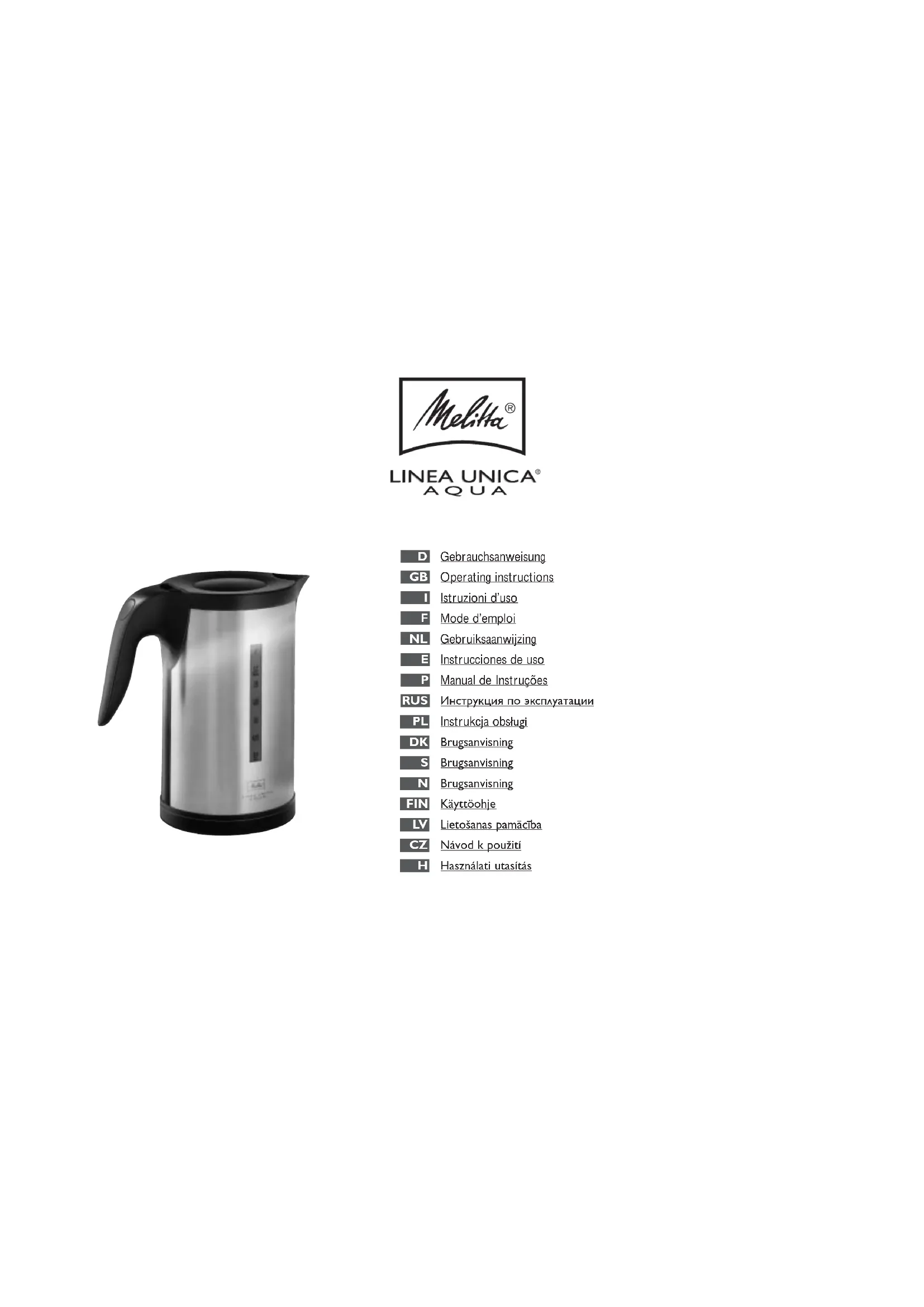 Unica Aqua - Bouilloire électrique MELITTA - Notice d'utilisation et mode d'emploi gratuit