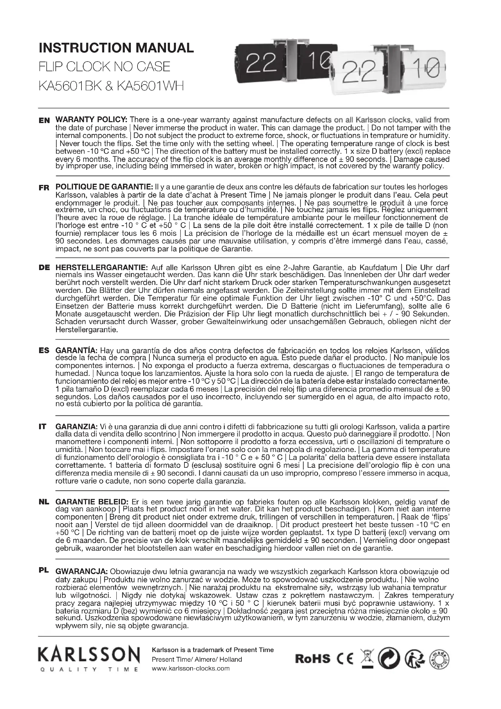 Retrouvez gratuitement la notice de l'appareil KA5601WH Karlsson au format PDF.