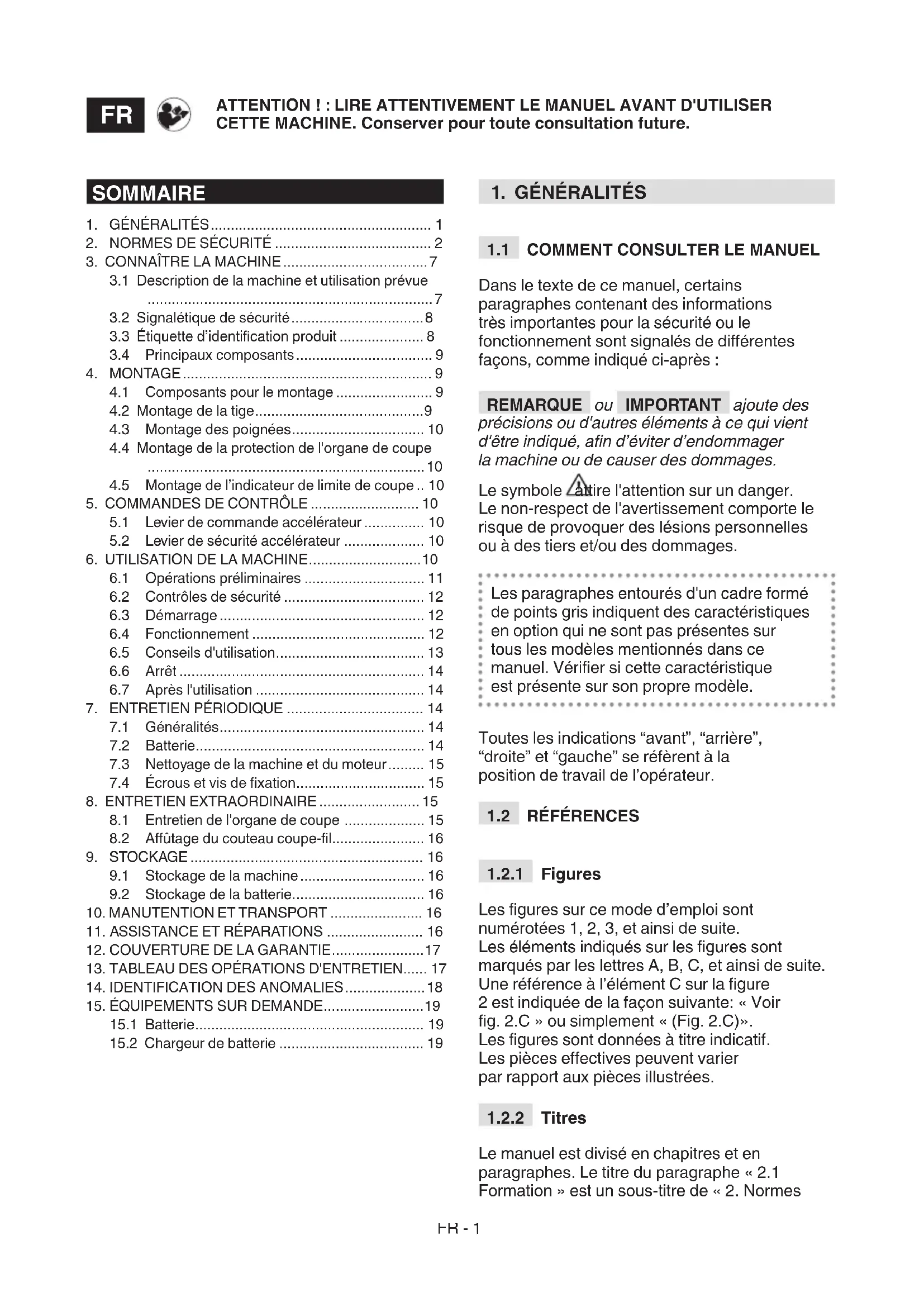 15.2 Chargeur de batterie .................................... 19FR - 2