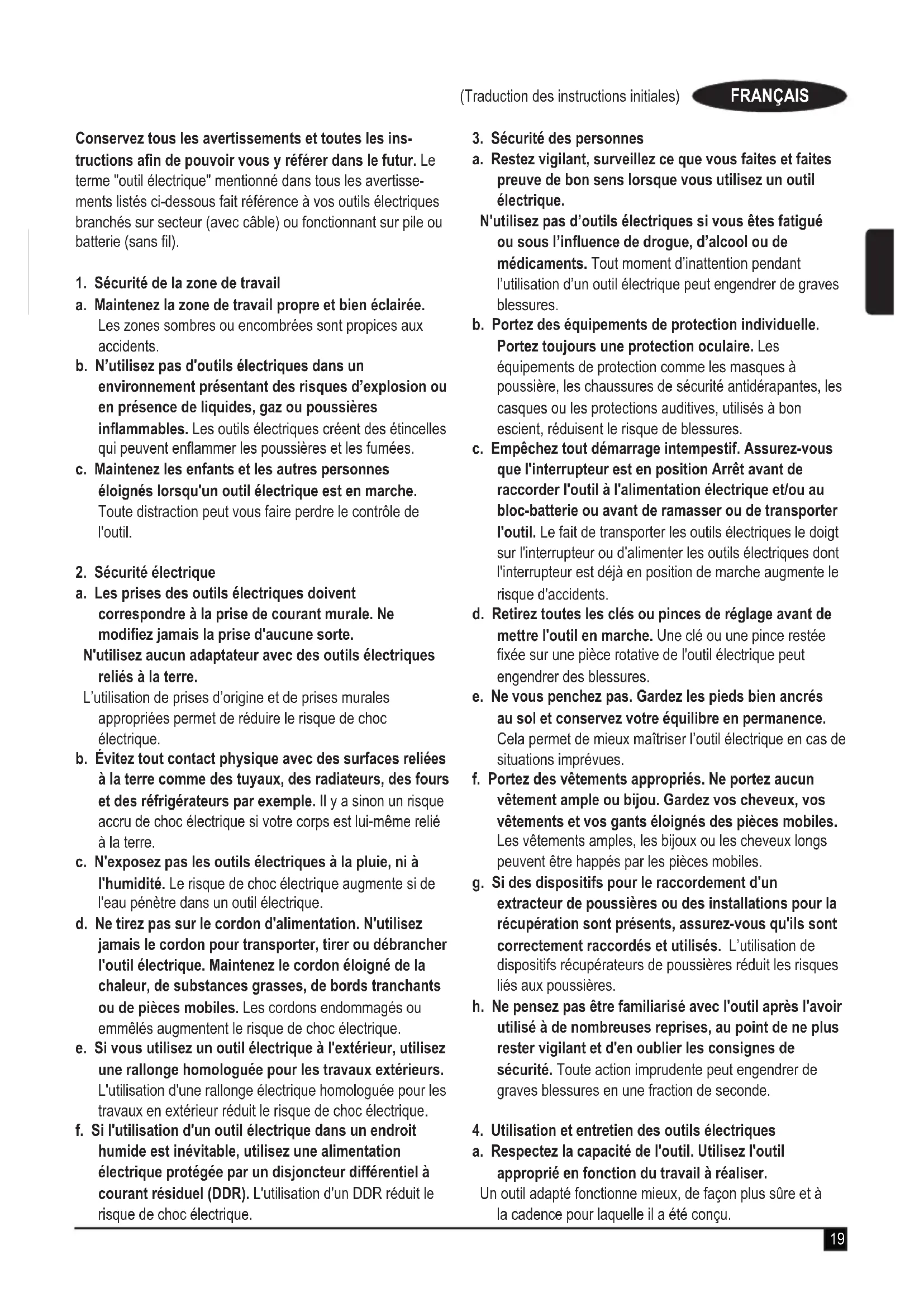 4. Utilisation et entretien des outils électriques