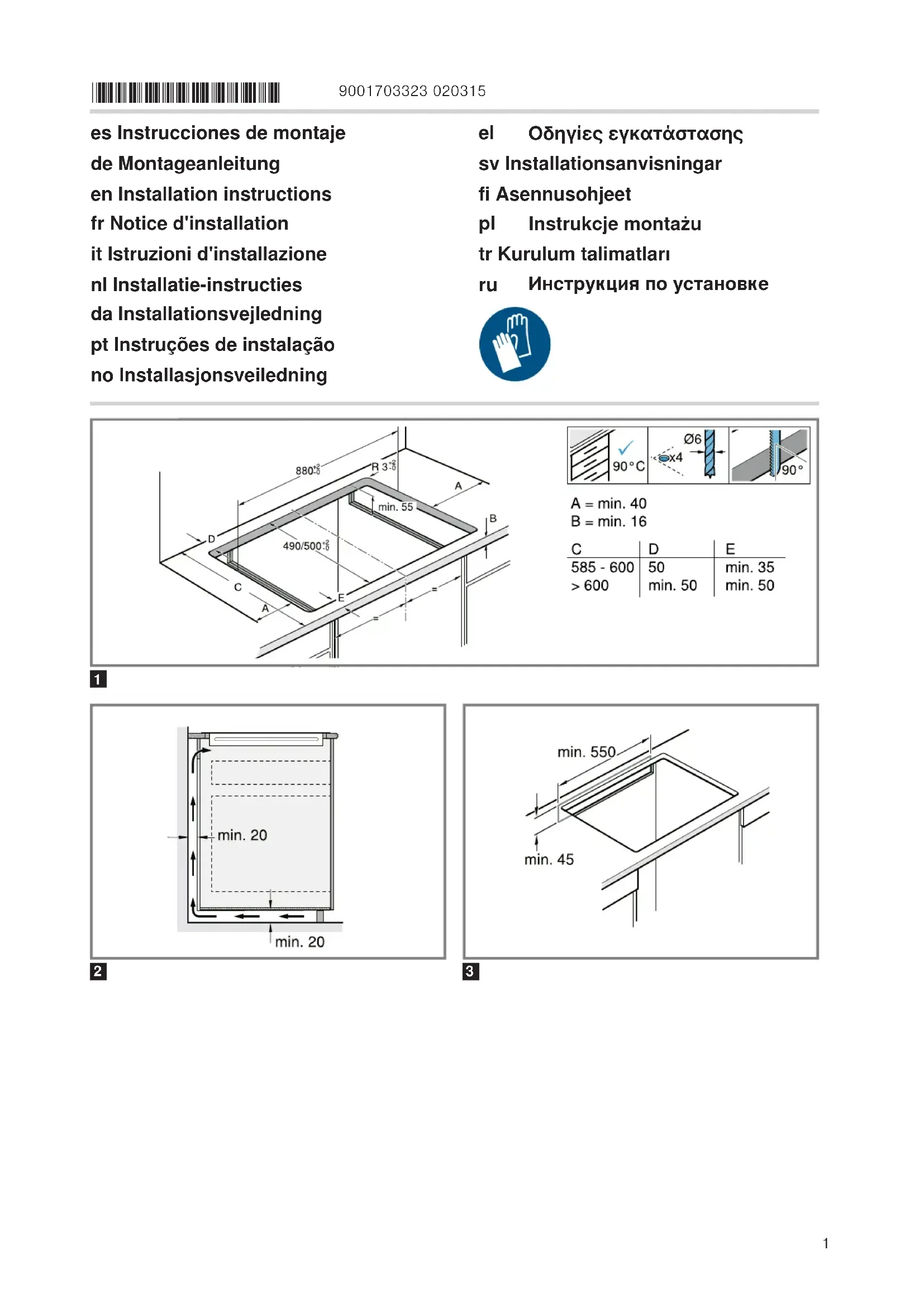 de montage. ‒ Veiller à ce que l'angle du chant de la découpe par rapport au plan de travail soit de 90°.