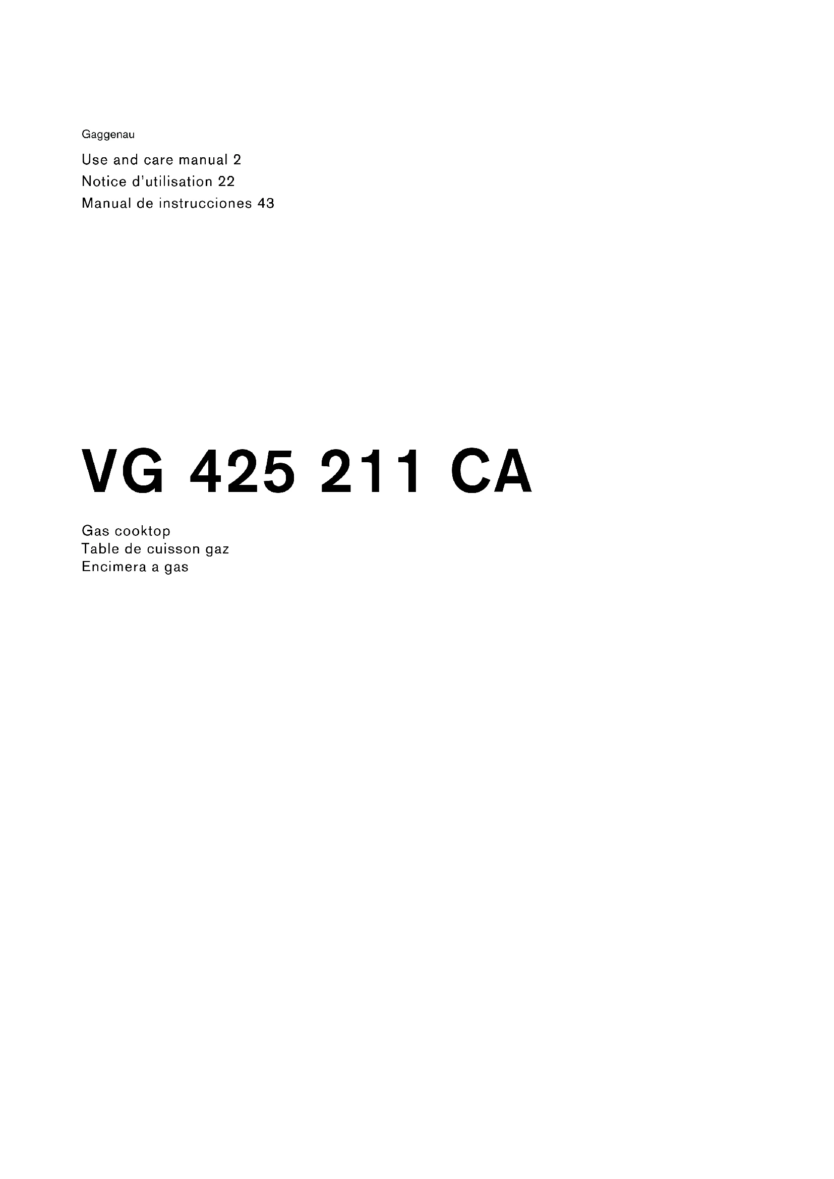 Retrouvez gratuitement la notice de l'appareil VG425211CA GAGGENAU au format PDF.