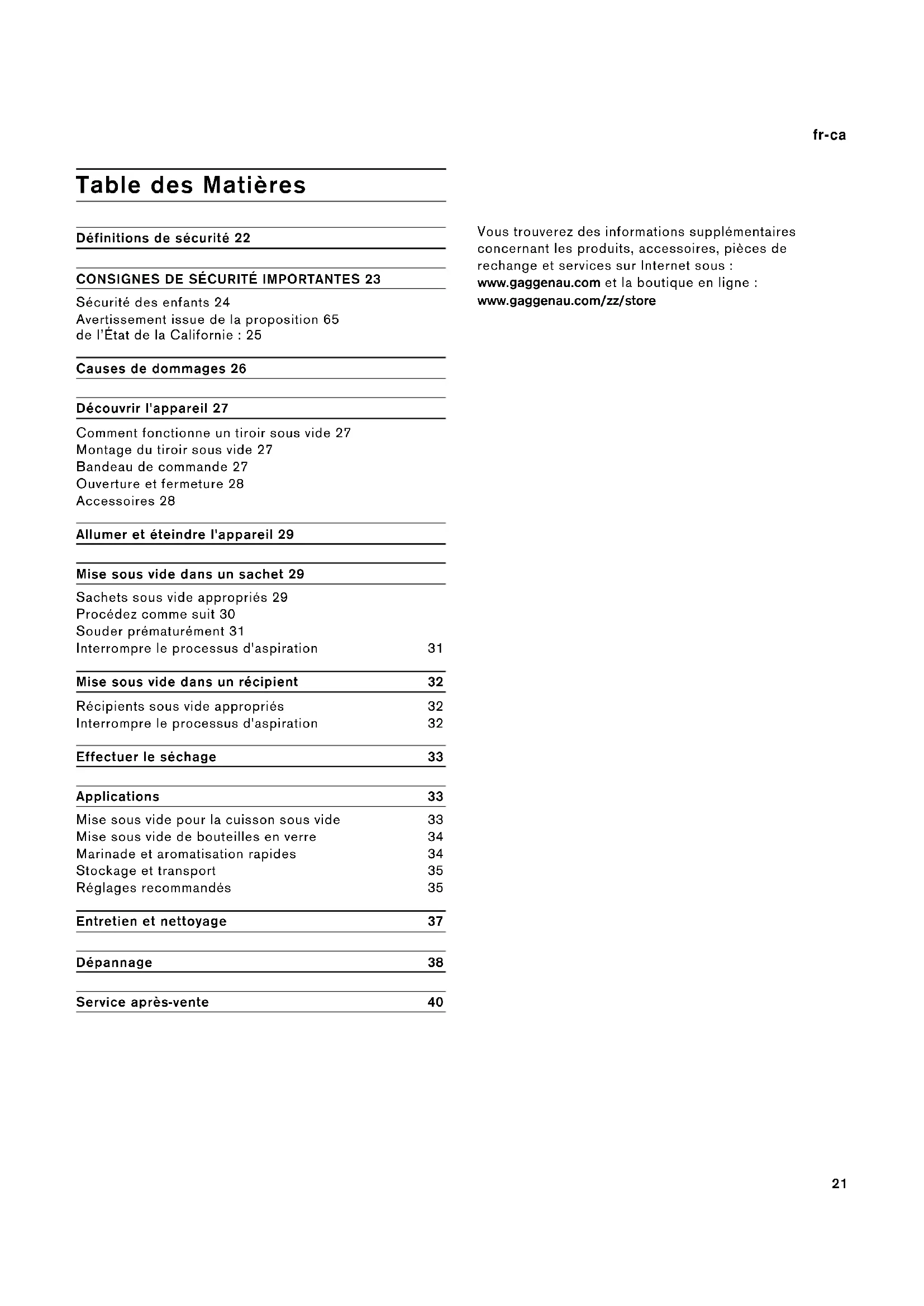 DV463710 - Appareils à emballage sous vide GAGGENAU - Notice d'utilisation et mode d'emploi gratuit