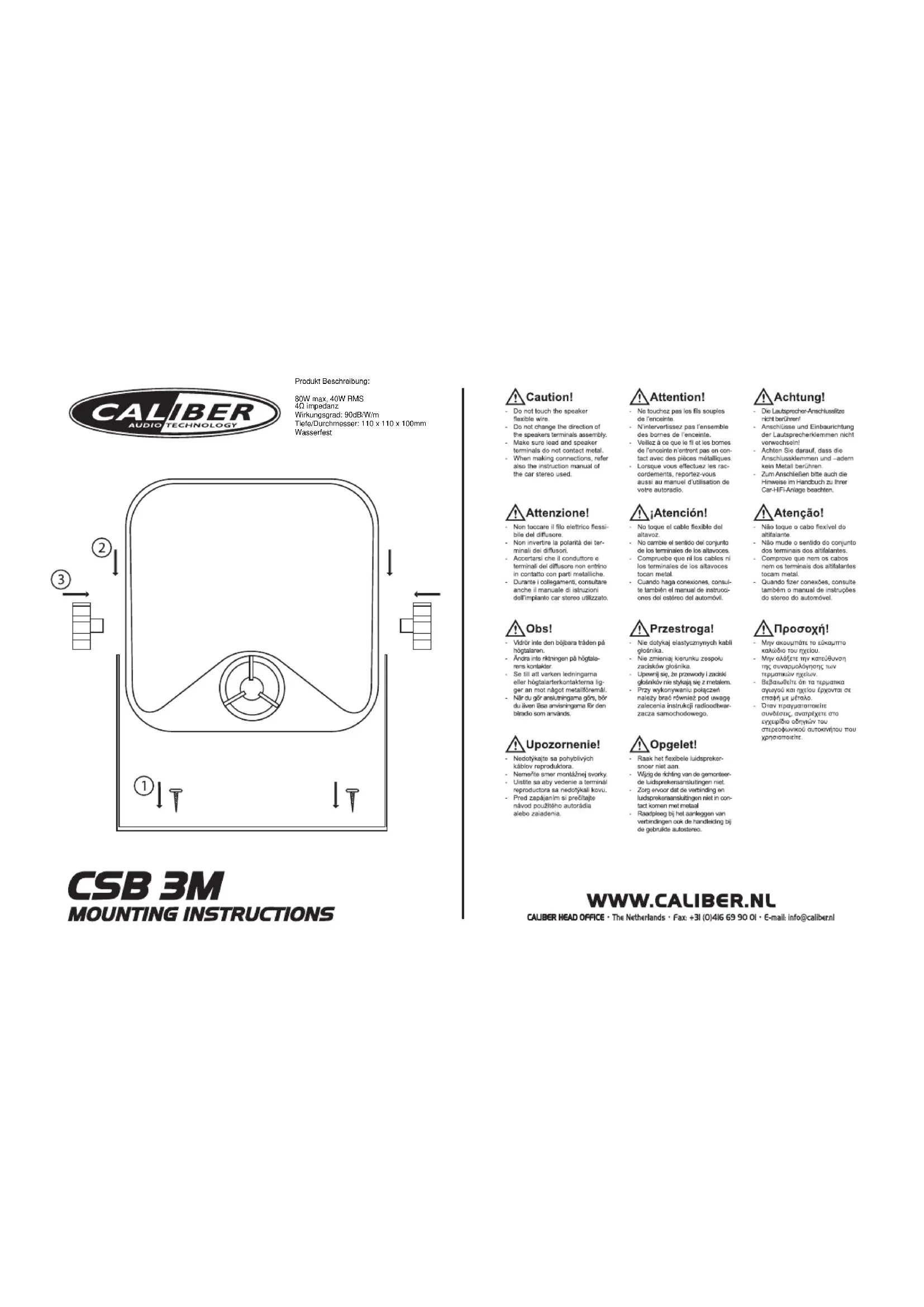 Retrouvez gratuitement la notice de l'appareil CSB3M CALIBER au format PDF.