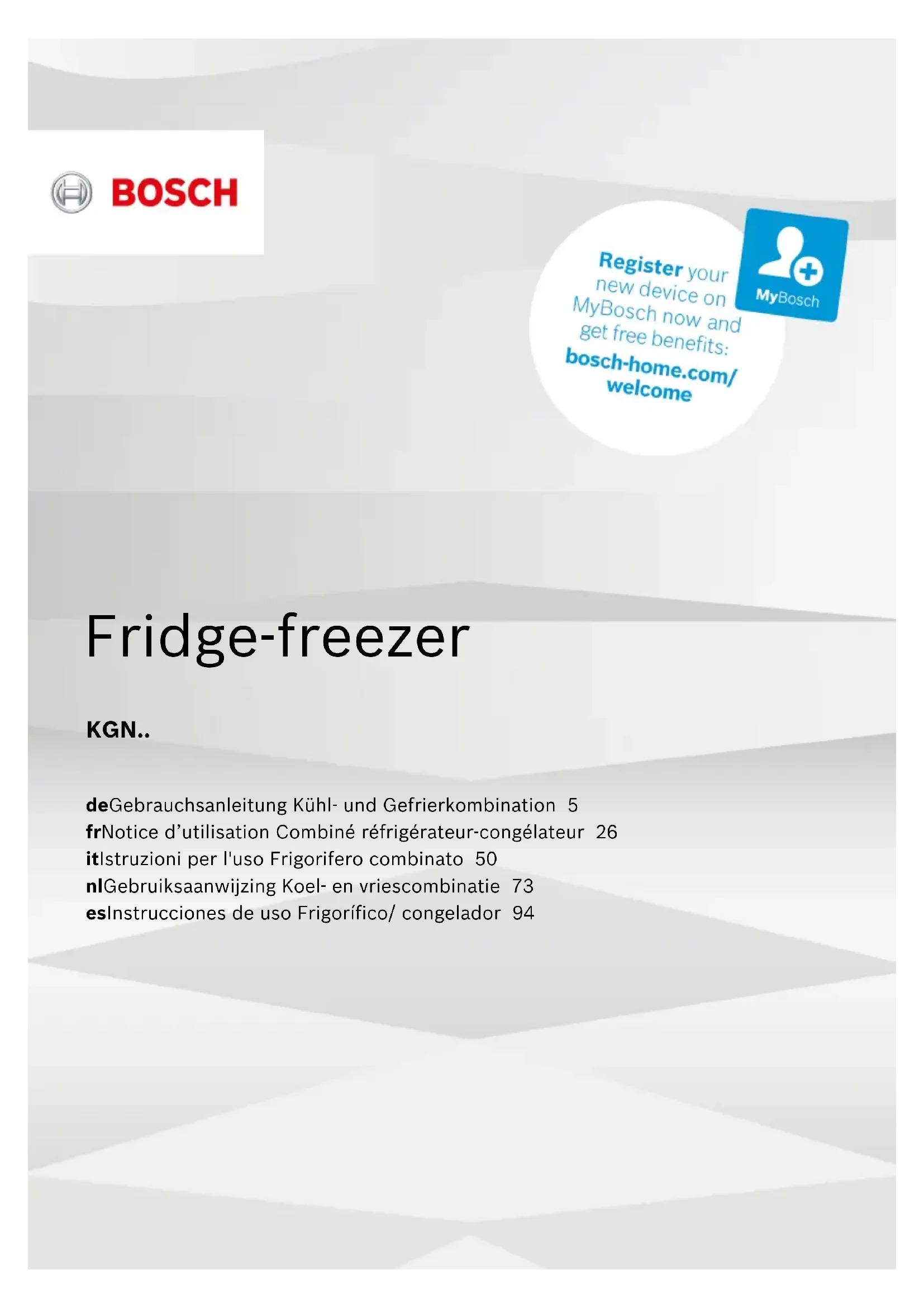 Retrouvez gratuitement la notice de l'appareil KGN39XI47 BOSCH au format PDF.