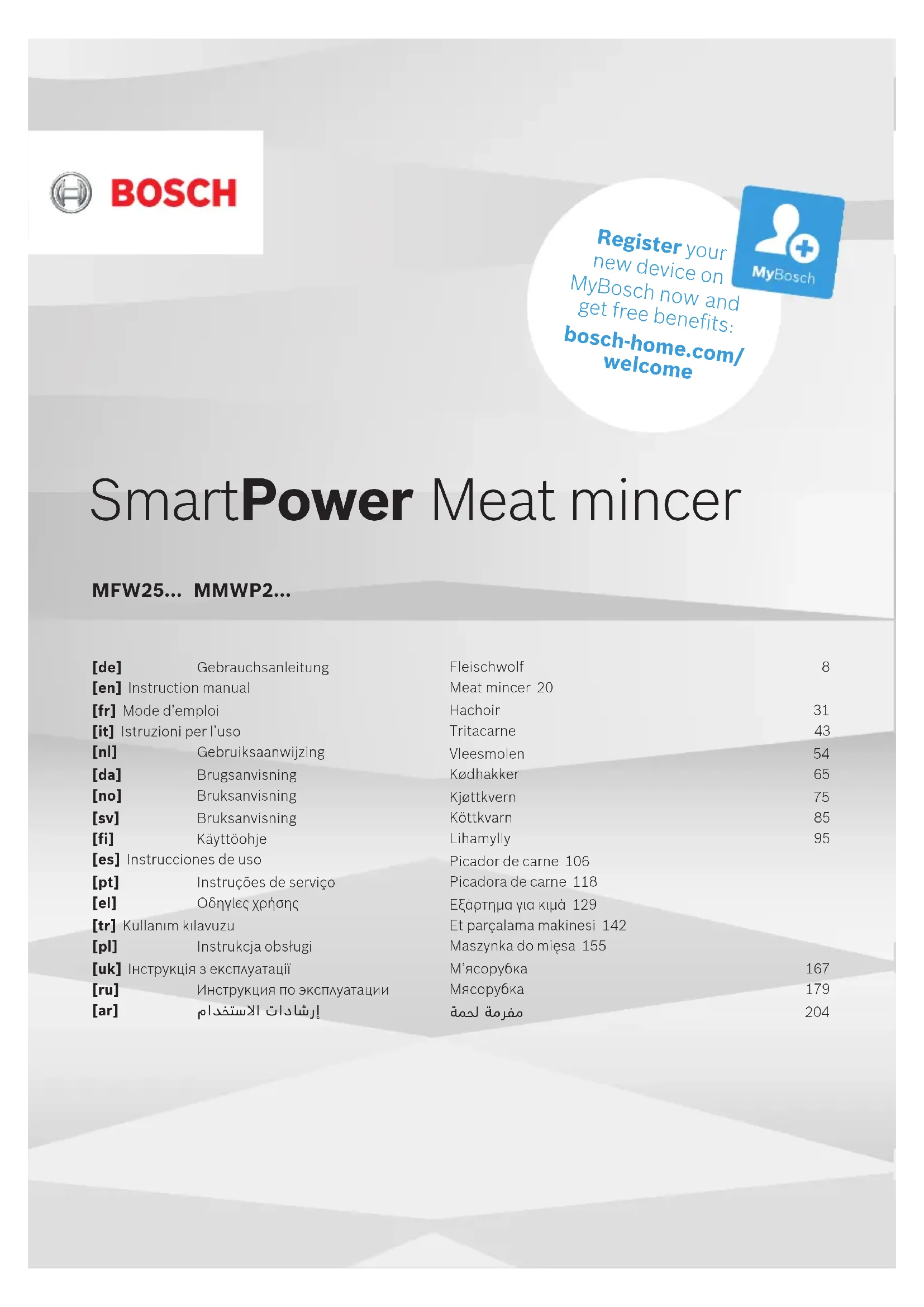 MFW2514W - Hachoir BOSCH - Notice d'utilisation et mode d'emploi gratuit