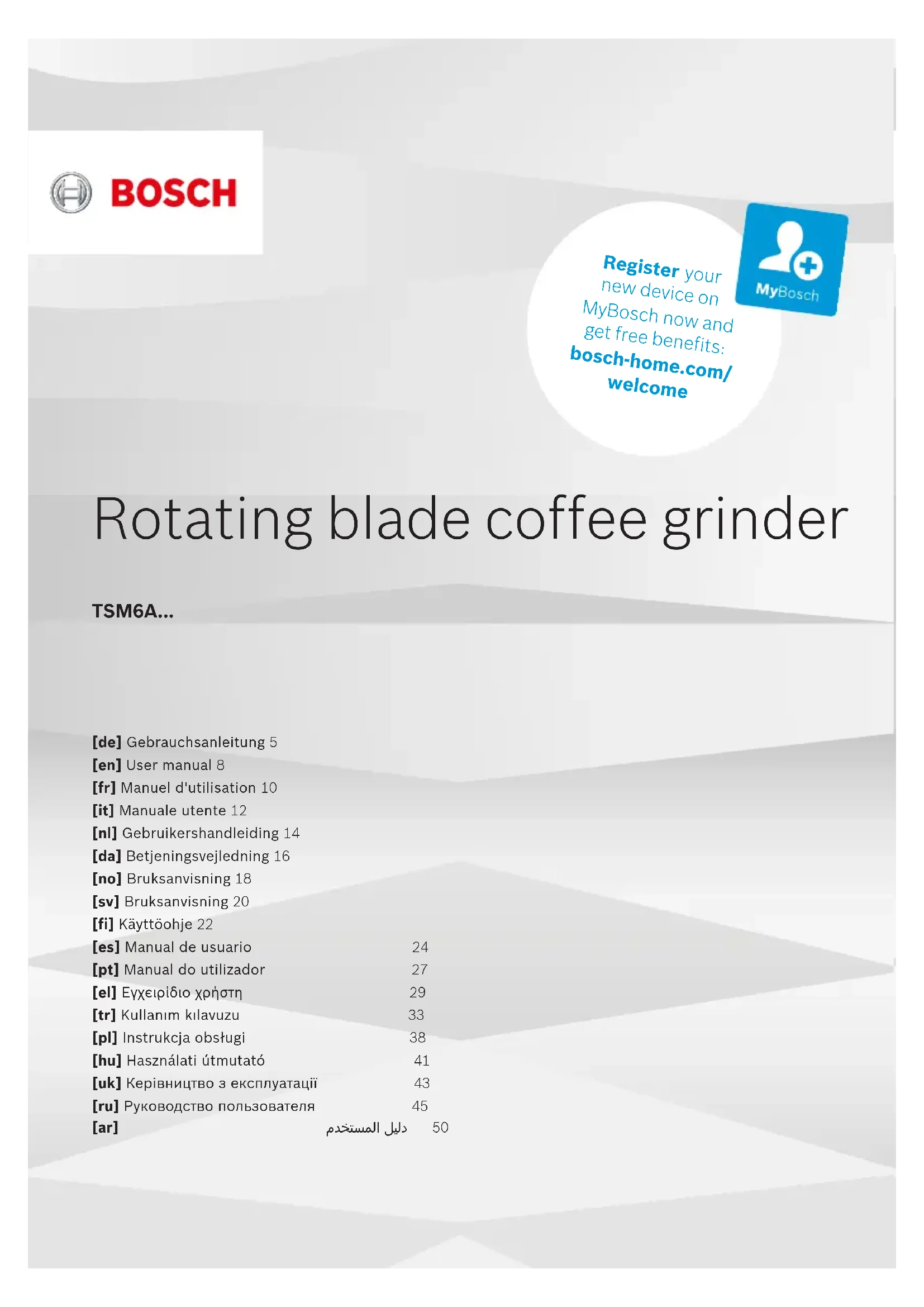 MKM6003NGB - Moulin à café BOSCH - Notice d'utilisation et mode d'emploi gratuit
