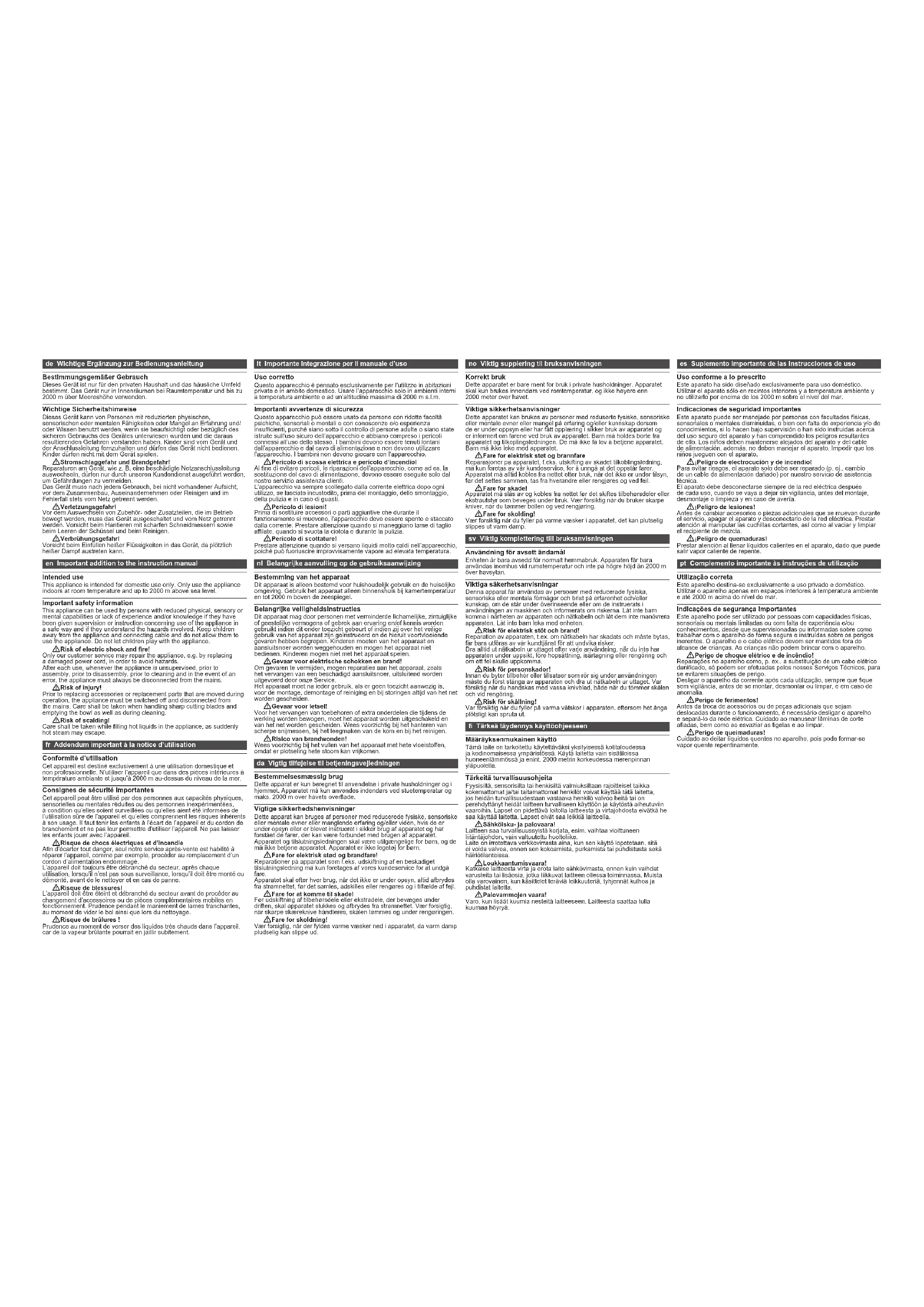 | Maintenance | Les accessoires sont lavables au lave-vaisselle. Nettoyer le bol et les accessoires après chaque utilisation pour éviter les résidus alimentaires. |