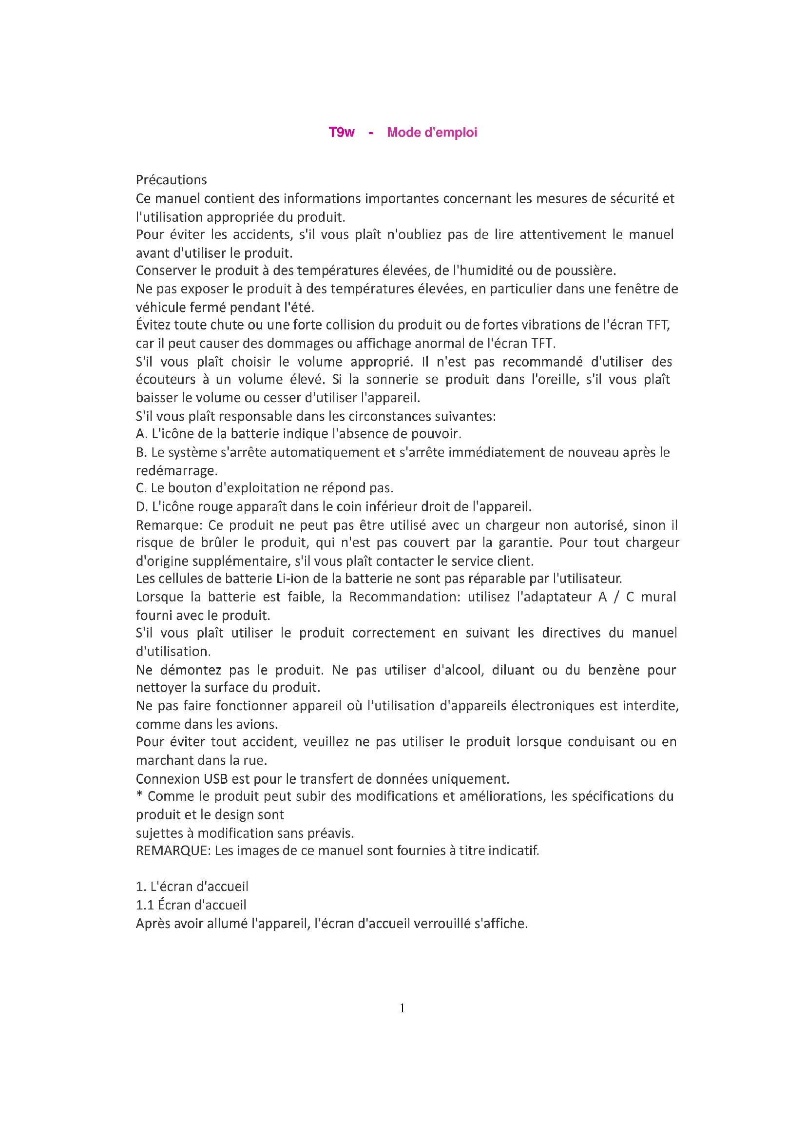 MODE D'EMPLOI T9w i-Joy