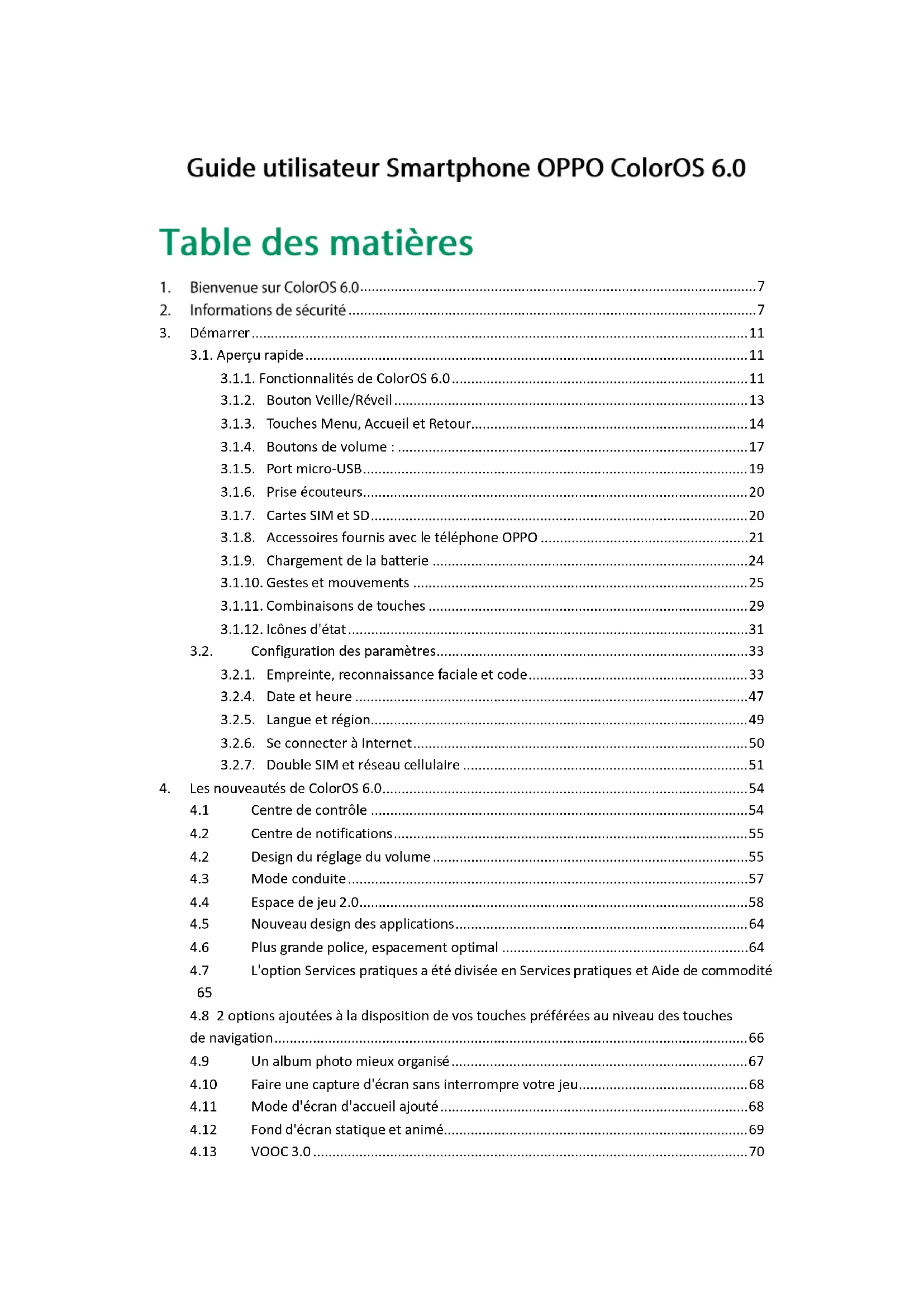 3.1.8. Accessoires fournis avec le téléphone OPPO ...................................................... 21