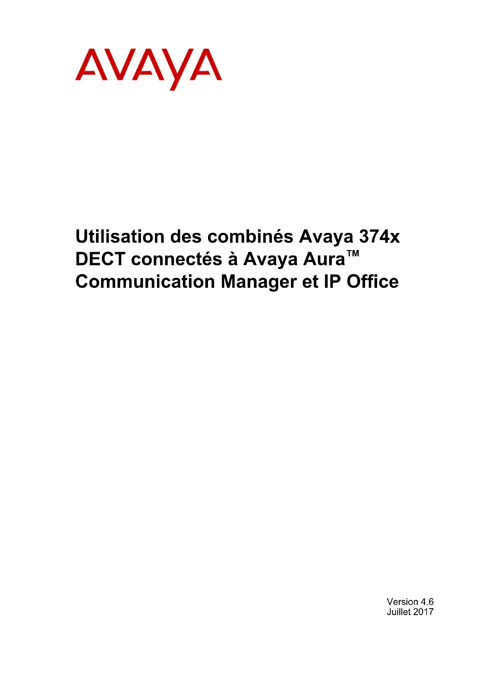 Index Juillet 2017 Utilisation des combinés Avaya 374x DECT connectés à Avaya Aura