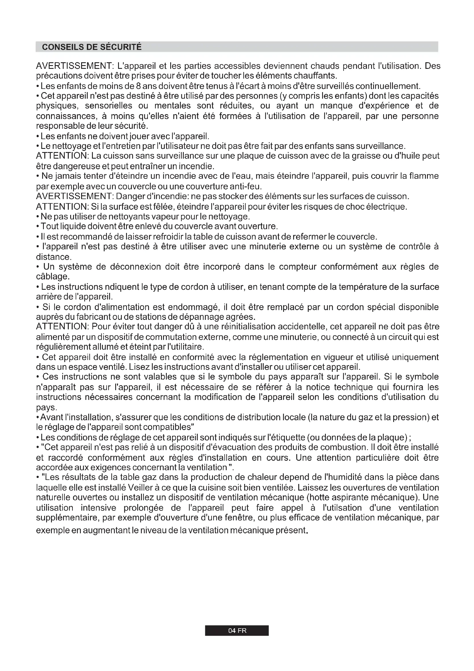 - Le nettoyage et l'entretien par l'utilisateur ne doit pas être fait par des enfants sans surveillance. ATTENTION: La cuisson sans surveillance sur une plaque de cuisson avec de la graisse ou d'huile peut être dangereuse et peut entraîner un incendie.