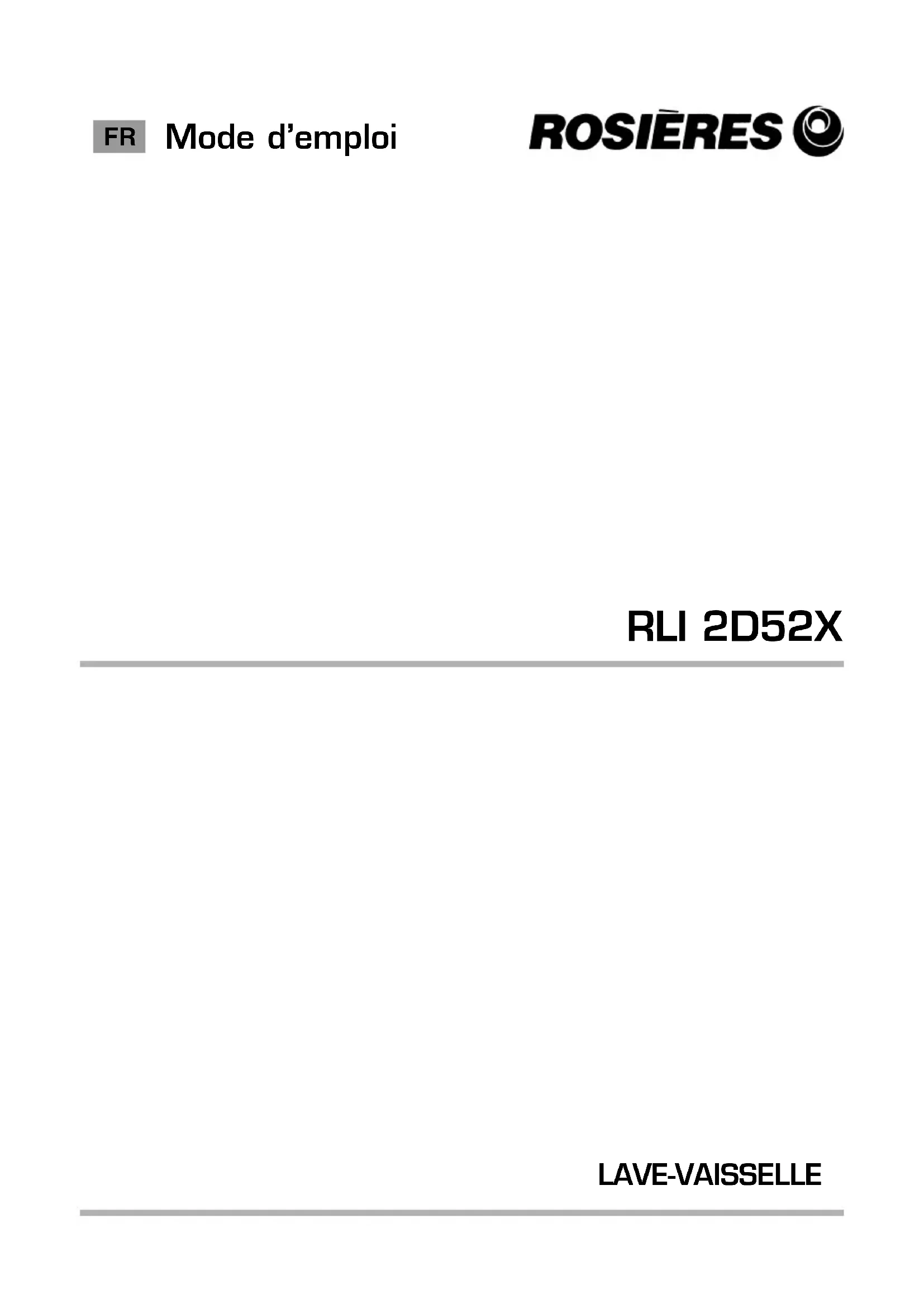 RLI 2D52X - Lave-vaisselle ROSIERES - Notice d'utilisation et mode d'emploi gratuit